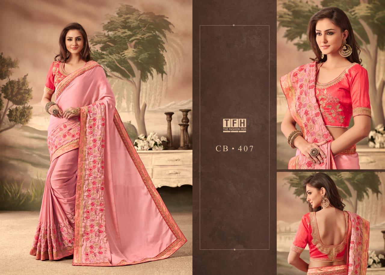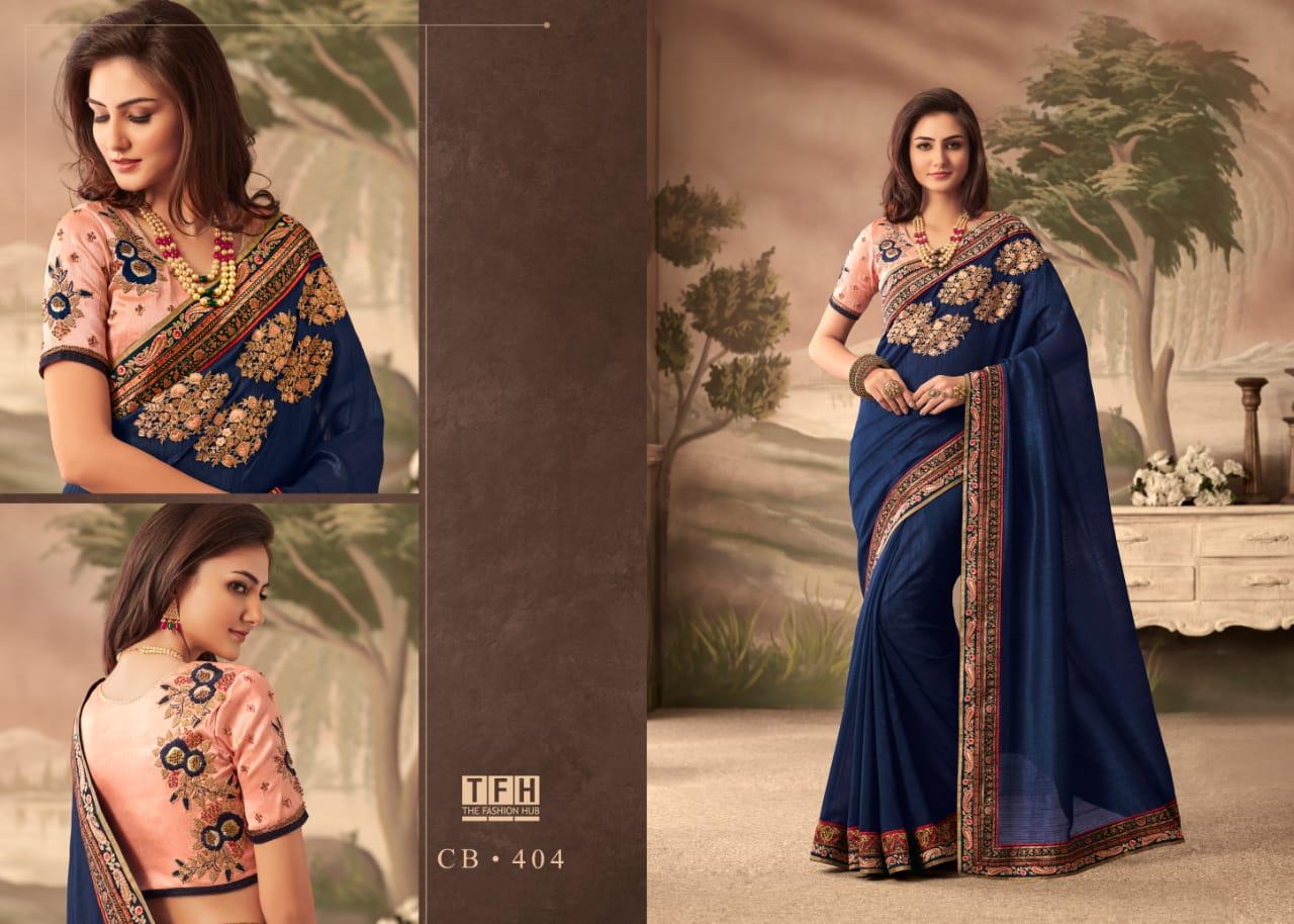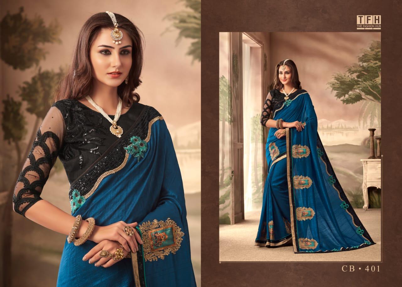 Buy Online Celebrity Vol 4 By Tfh 401 Series Designer Party Wear Saree Collection Wholesale Dealer Surat 9 Pcs of Full Catalogue at Wholesale Price. Looking for Celebrity Vol 4 By Tfh 401 Series Designer Party Wear Saree Collection Wholesale Dealer Surat Full Catalouge at Best Price? Buy Now Celebrity Vol 4 By Tfh 401 Series Designer Party Wear Saree Collection Wholesale Dealer Surat at Wholesale Rate of Rs 18387 with Total 9 Pcs from authroized dealer and supplier of TFH Brand. Cost of Each piece is just only Rs 2043 which is very low and affordable price to resale the product in your retail store ,This is Surat based Wholesale Supplier & Dealer of TFH Brand. Click on Brand name to Know more about TFH Brand's products.Call or Whatsapp on 9898838984 for booking or enquiry