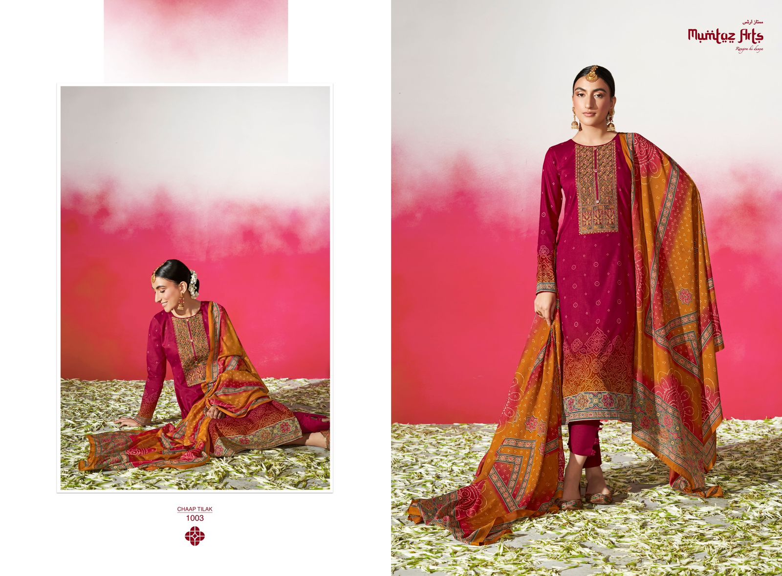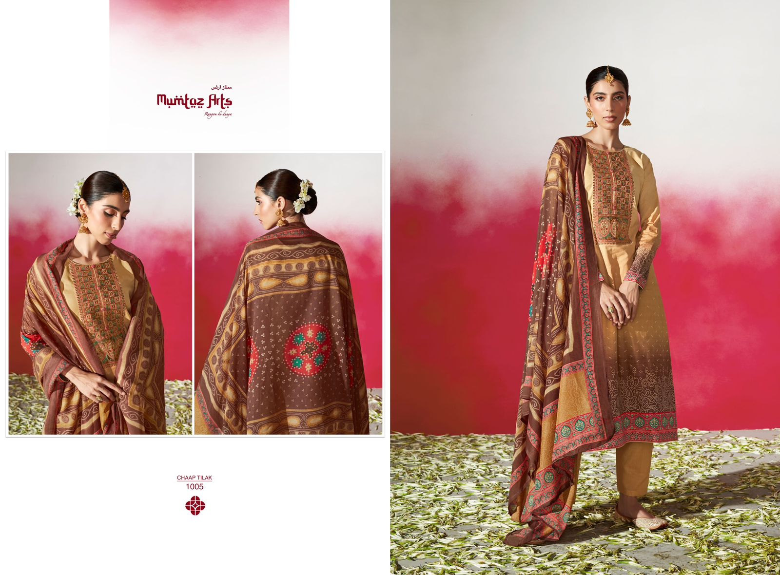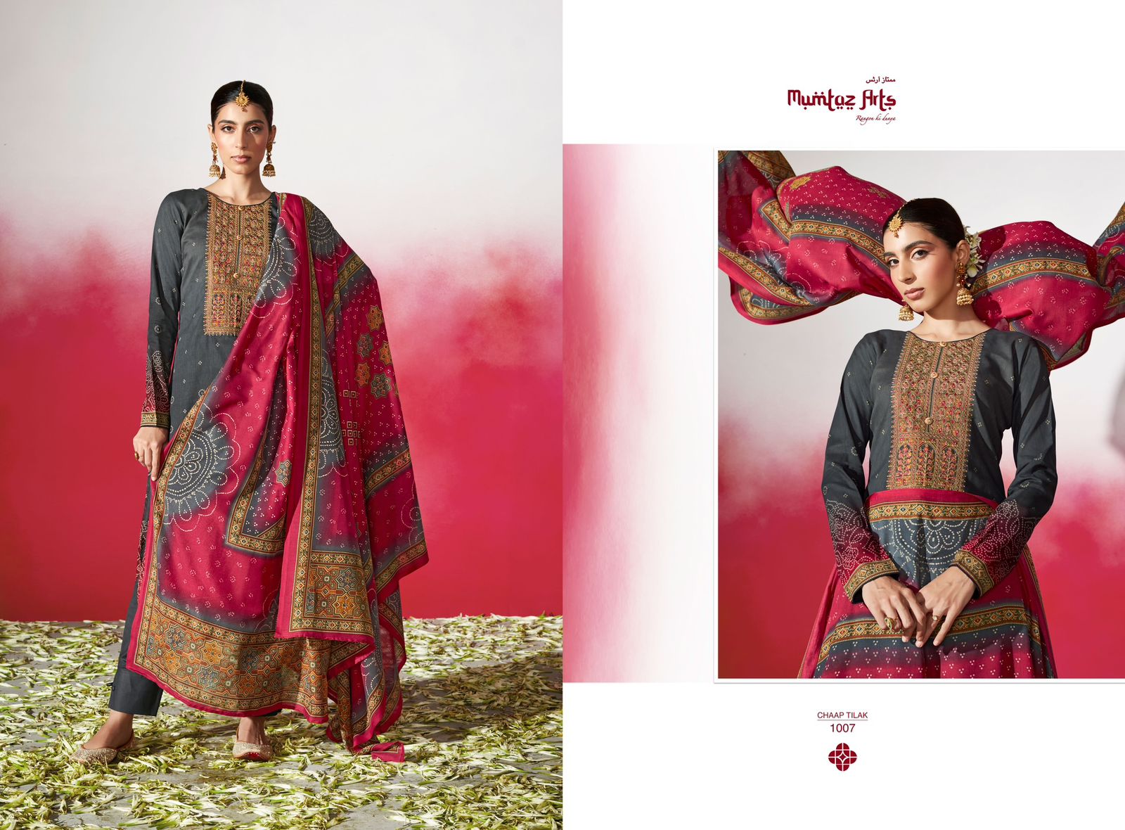Buy Online Chaap Tilak By Mumtaz Arts Digital Print Suits 8 Pcs of Full Catalogue at Wholesale Price. Looking for Chaap Tilak By Mumtaz Arts Digital Print Suits Full Catalouge at Best Price? Buy Now Chaap Tilak By Mumtaz Arts Digital Print Suits at Wholesale Rate of Rs 7000 with Total 8 Pcs from authroized dealer and supplier of MUMTAZ ARTS Brand. Cost of Each piece is just only Rs 875 which is very low and affordable price to resale the product in your retail store ,This is Surat based Wholesale Supplier & Dealer of MUMTAZ ARTS Brand. Click on Brand name to Know more about MUMTAZ ARTS Brand's products.Call or Whatsapp on 9898838984 for booking or enquiry