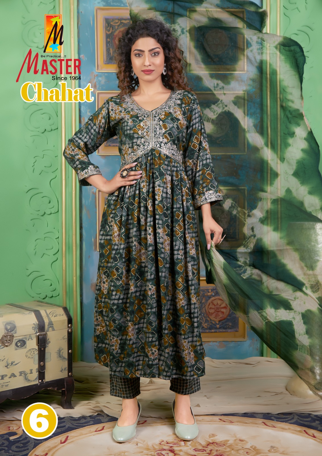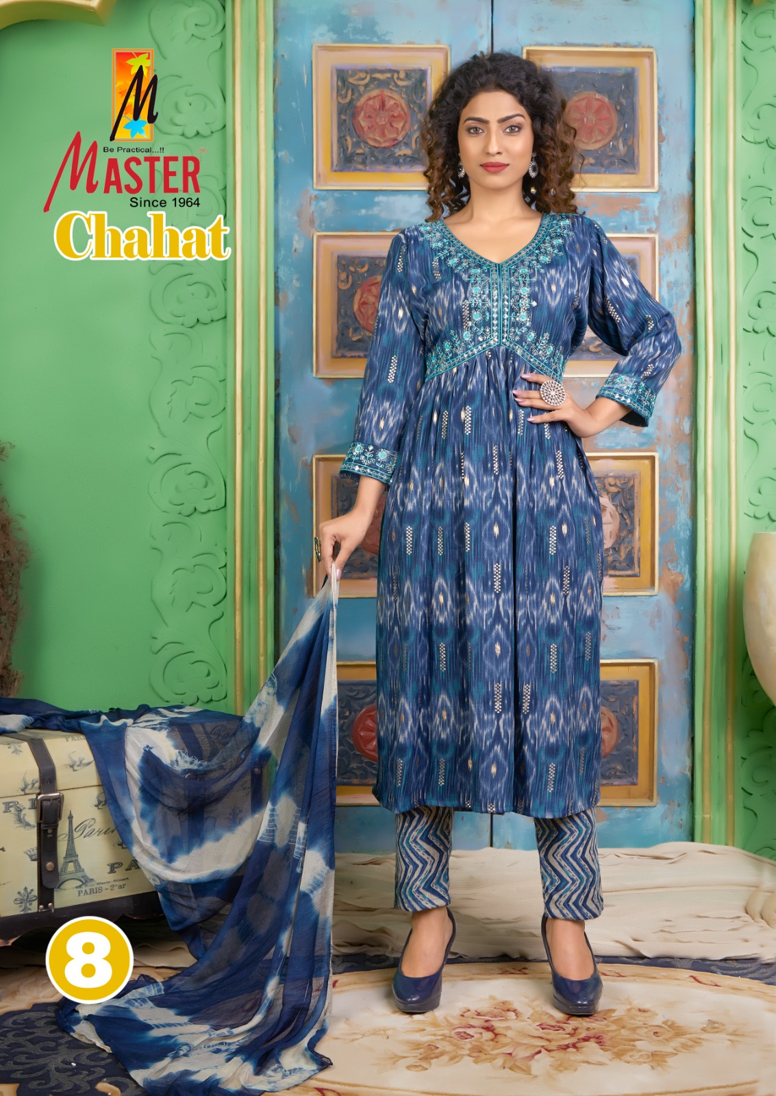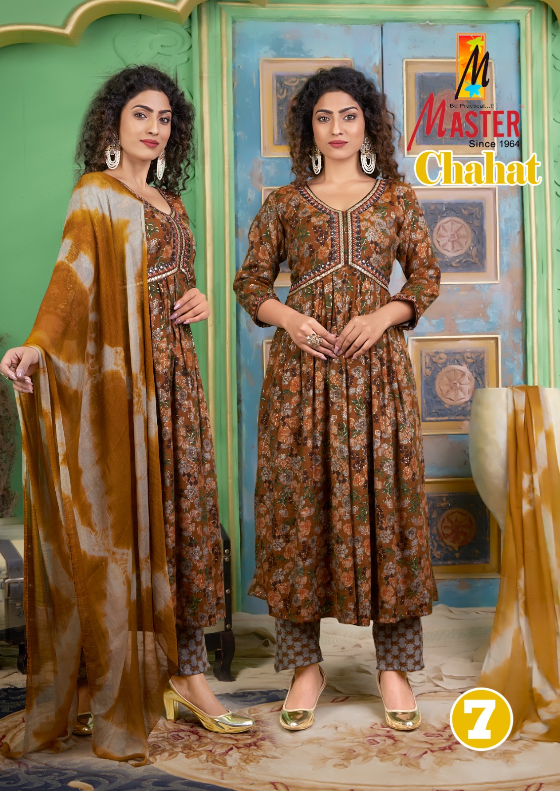 Buy Online Chahat Aaliya Cut Master 8 Pcs of Full Catalogue at Wholesale Price. Looking for Chahat Aaliya Cut Master Full Catalouge at Best Price? Buy Now Chahat Aaliya Cut Master at Wholesale Rate of Rs 4792 with Total 8 Pcs from authroized dealer and supplier of Brand. Cost of Each piece is just only Rs 599 which is very low and affordable price to resale the product in your retail store ,This is Surat based Wholesale Supplier & Dealer of Brand. Click on Brand name to Know more about Brand's products.Call or Whatsapp on 9898838984 for booking or enquiry