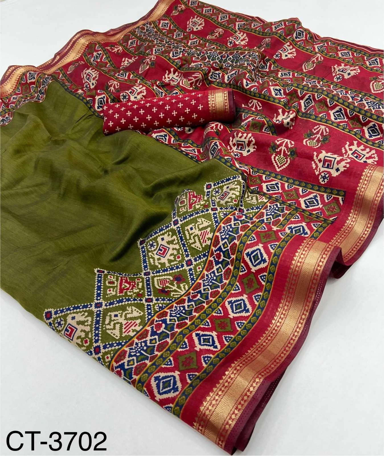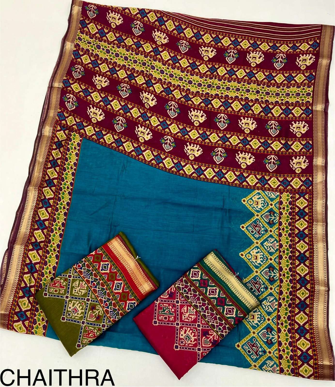 ➡️Chaithra ➡️Soft Mul Cotton with Designer Patola printed & Zari border