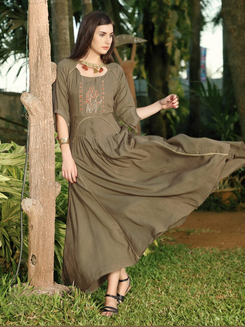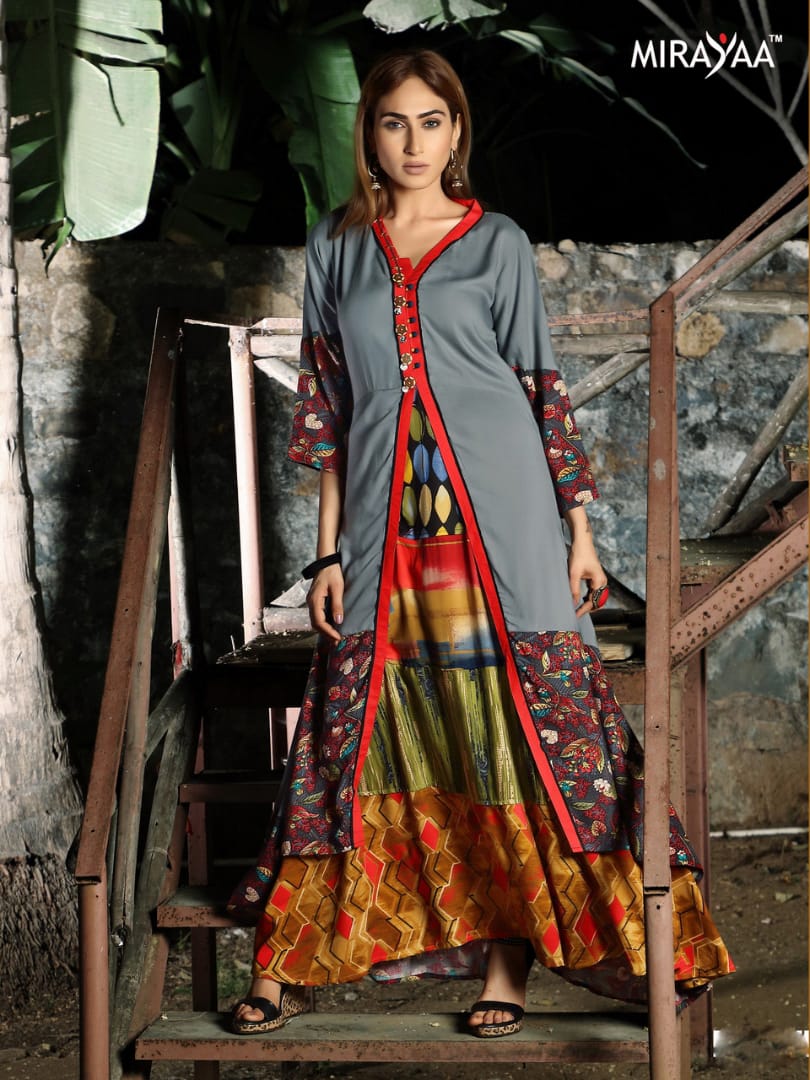 Chaka Chak By Mirayaa Heavy Reyon Gown Style Kurtis Wholesale Supplier And Dealer Gujarat