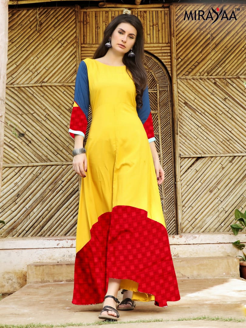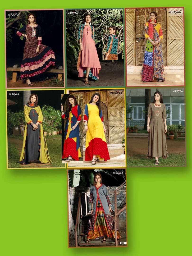 Buy Online Chaka Chak By Mirayaa Heavy Reyon Gown Style Kurtis Wholesale Supplier And Dealer Gujarat 7 Pcs of Full Catalogue at Wholesale Price. Looking for Chaka Chak By Mirayaa Heavy Reyon Gown Style Kurtis Wholesale Supplier And Dealer Gujarat Full Catalouge at Best Price? Buy Now Chaka Chak By Mirayaa Heavy Reyon Gown Style Kurtis Wholesale Supplier And Dealer Gujarat at Wholesale Rate of Rs 6650 with Total 7 Pcs from authroized dealer and supplier of Mirayaa Brand. Cost of Each piece is just only Rs 950 which is very low and affordable price to resale the product in your retail store ,This is Surat based Wholesale Supplier & Dealer of Mirayaa Brand. Click on Brand name to Know more about Mirayaa Brand's products.Call or Whatsapp on 9898838984 for booking or enquiry