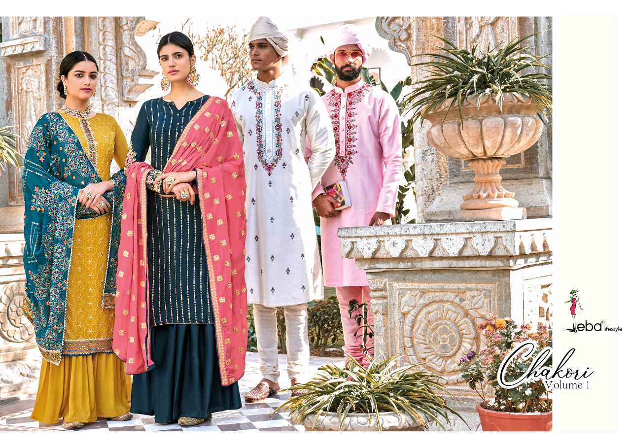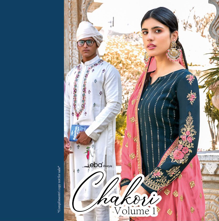 *Hello dear customer* eba lifestyle present new volume *Chakori - vol - 1* Febric - *Top - Heavy Chinon with hevey embroidery* *Duppta- Chinon with hevey emboidery work* Bottom & inner- dual santoon *PRICE 1699/-* gst extra Set to set Regard by eba lifestyle surat |