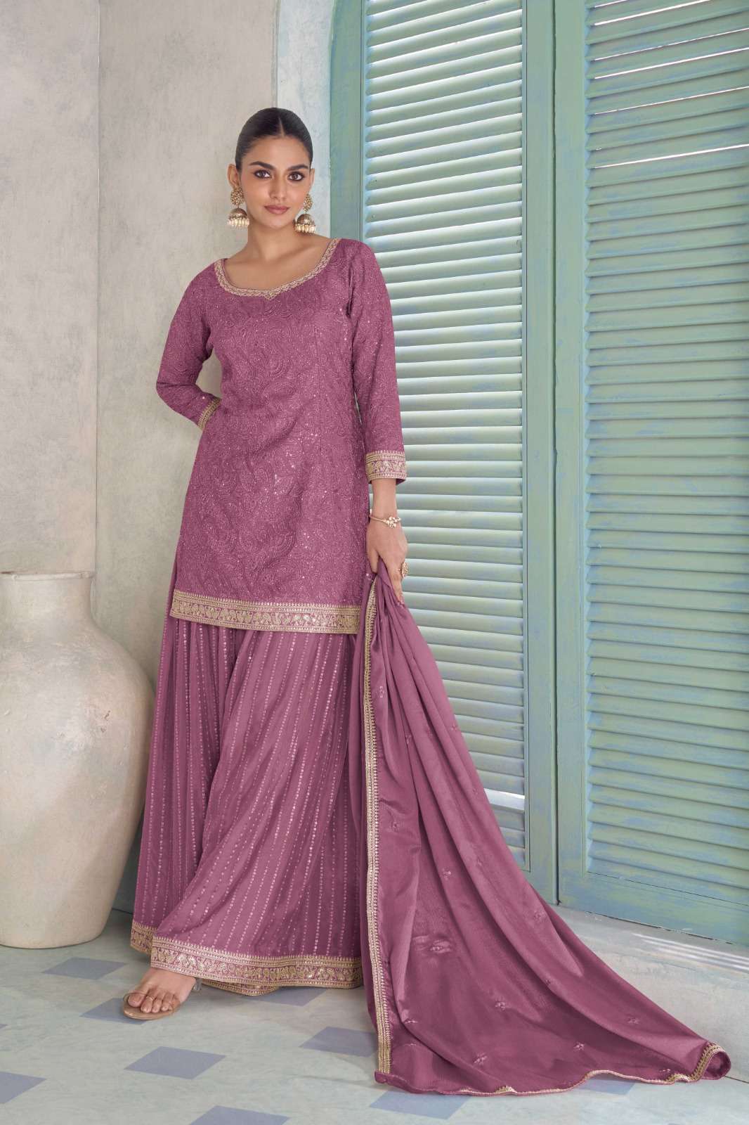 Fabric Detail..!! *_Top - Real Chinon_* *_Dupatta - Real Chinon_* *_Plazoo - Real Chinon_*