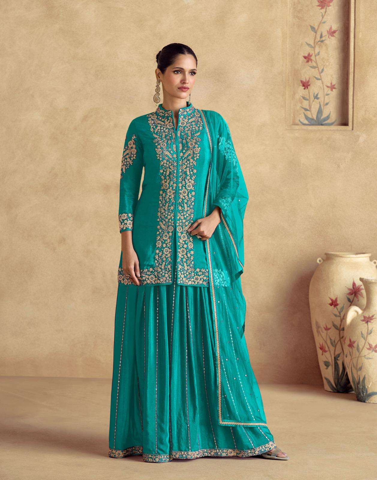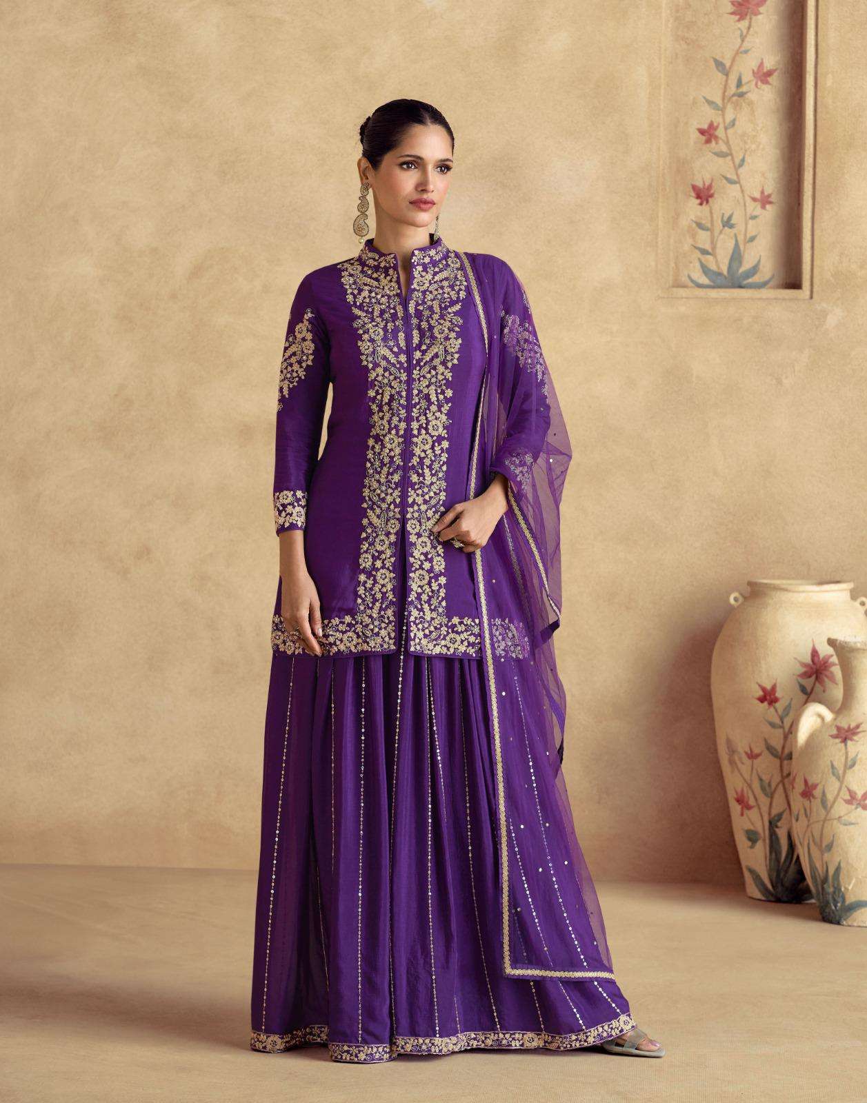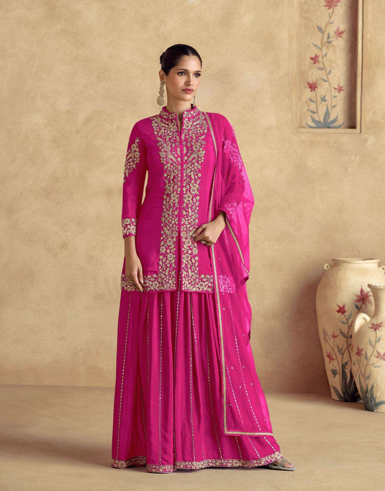 TOP-PREMIUM CHINNON SILK. (Free size stitch ) PLAZZO-PREMIUM CHINNON SILK (free size stitch ) DUPTTA- PREMIUM NET