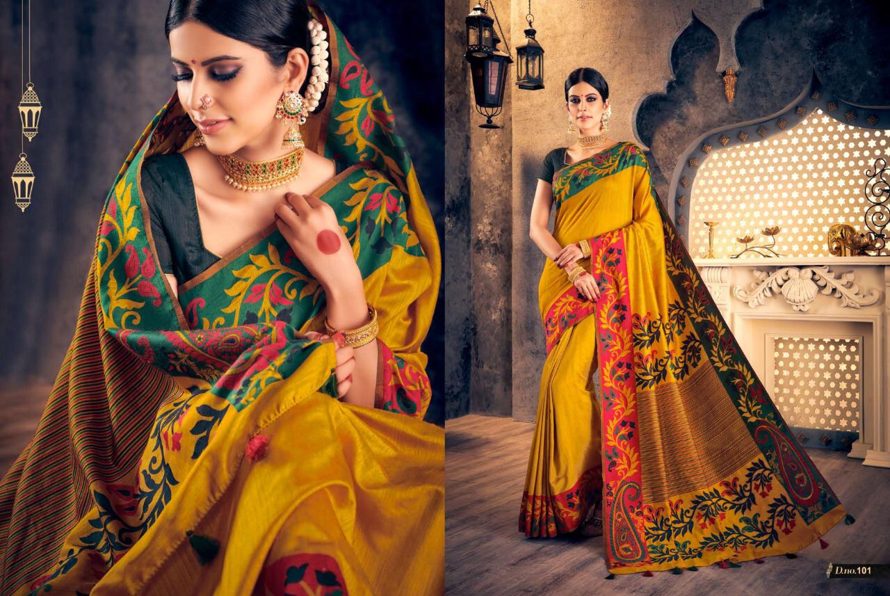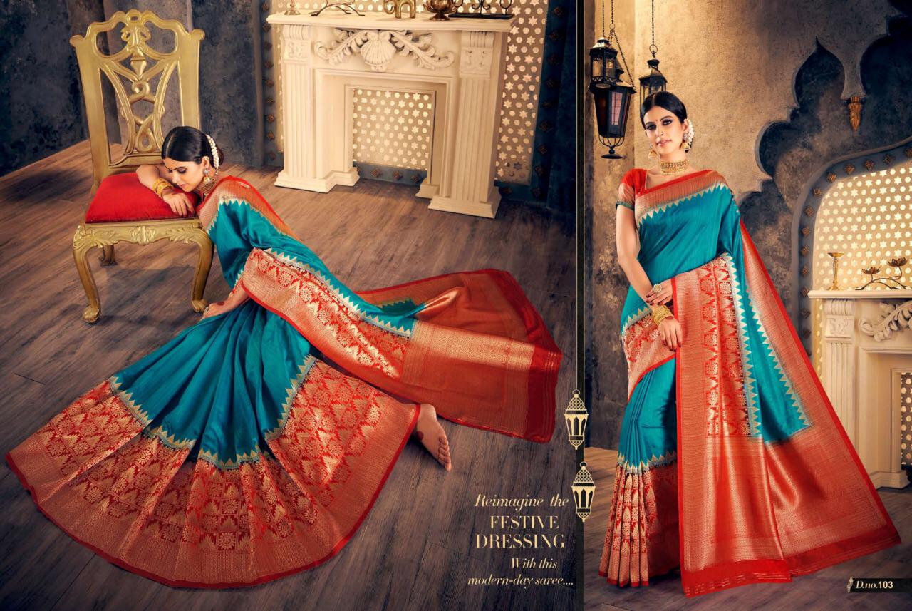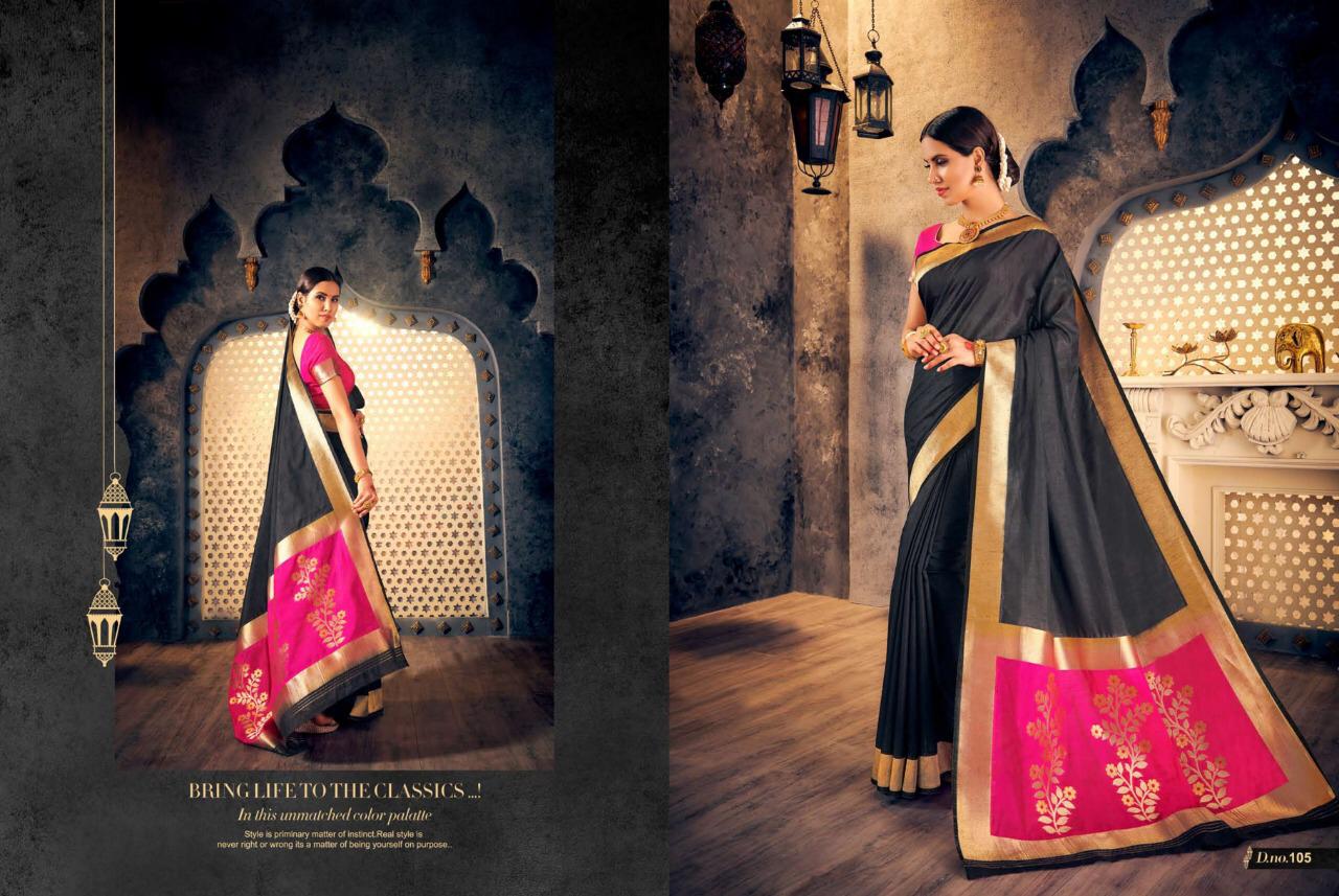 Brand - Raj Sanskar . Catlog name - CHAKRIKA SILK 101 to 111 series GST 5 Percent Extra. Delivery 3-4 days Rate list atteched in pics Set and loose available |