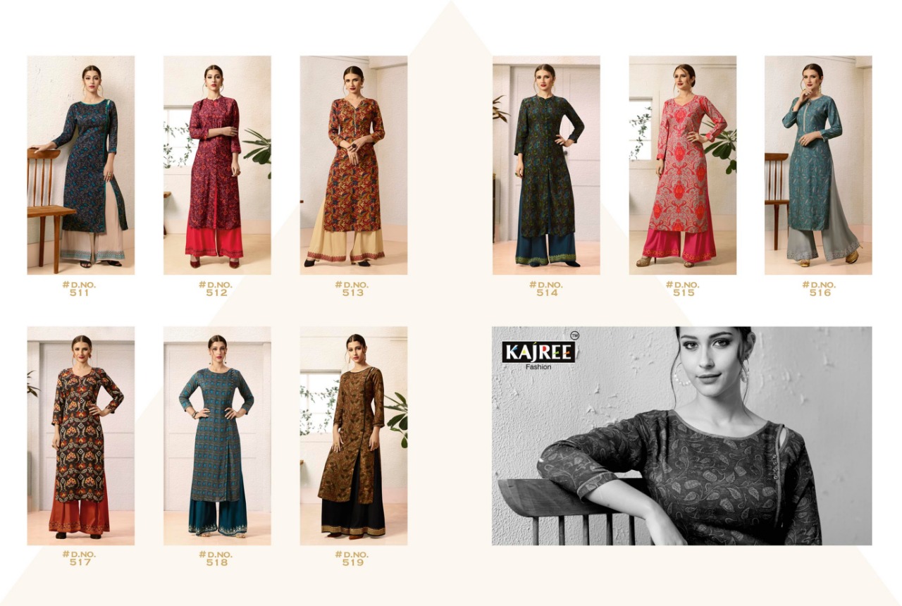 Buy Online Chambor Vol 3 By Kajree Fashion Ready Made Reyon Top With Embroidered Plazzo Suits Wholesale Supplier And Dealer Gujarat 9 Pcs of Full Catalogue at Wholesale Price. Looking for Chambor Vol 3 By Kajree Fashion Ready Made Reyon Top With Embroidered Plazzo Suits Wholesale Supplier And Dealer Gujarat Full Catalouge at Best Price? Buy Now Chambor Vol 3 By Kajree Fashion Ready Made Reyon Top With Embroidered Plazzo Suits Wholesale Supplier And Dealer Gujarat at Wholesale Rate of Rs 6525 with Total 9 Pcs from authroized dealer and supplier of KAJRI STYLE Brand. Cost of Each piece is just only Rs 725 which is very low and affordable price to resale the product in your retail store ,This is Surat based Wholesale Supplier & Dealer of KAJRI STYLE Brand. Click on Brand name to Know more about KAJRI STYLE Brand's products.Call or Whatsapp on 9898838984 for booking or enquiry
