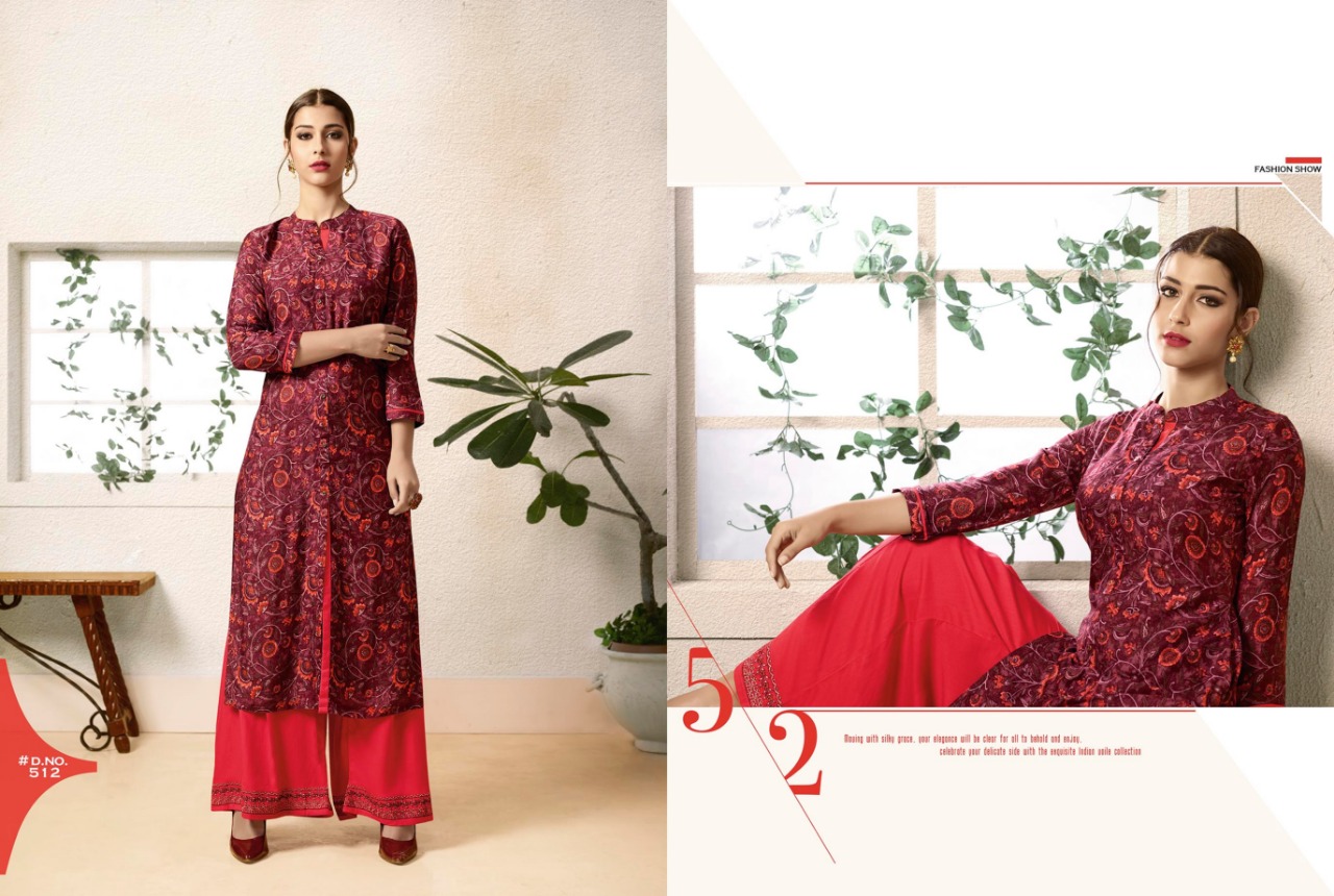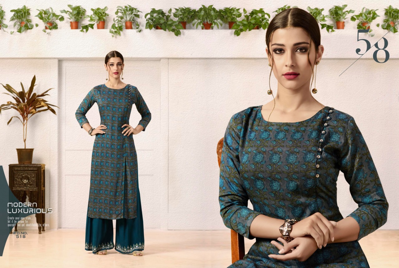 ?Kajree Fashion has launch New catalog "Chambor Vol - 3" ?Catalog - Chambor Vol - 3 ?Top:- Rayon Printed ?Bottom :- Rayon Plazzo with Embroidery Work ?Size :- m-38, L-40, XL-42, XXL-44 ?Total Design :- 9 ?Dispatching 5 to 6 days later ?Booking started from now...? Book your order Rate -725 per Pcs . Set to set . GST 5 Percent Extra |