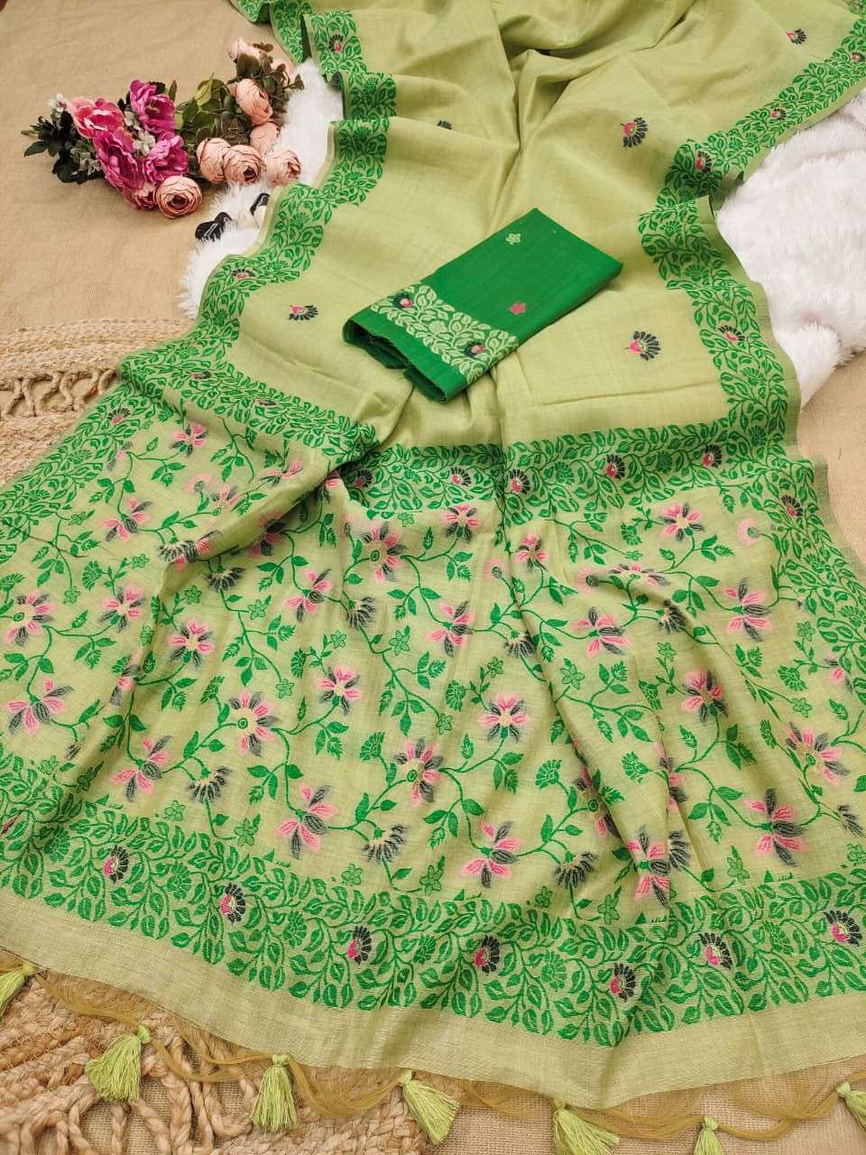 Chanderi Cotton 503 – Premium Jamdani Resham Weaving Saree