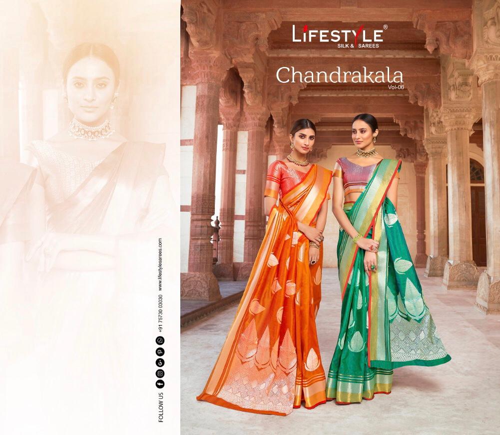 Buy Online Chandrakala Vol 6 By Lifestyle Sarees Wholesale Supplier And Trader India 6 Pcs of Full Catalogue at Wholesale Price. Looking for Chandrakala Vol 6 By Lifestyle Sarees Wholesale Supplier And Trader India Full Catalouge at Best Price? Buy Now Chandrakala Vol 6 By Lifestyle Sarees Wholesale Supplier And Trader India at Wholesale Rate of Rs 6696 with Total 6 Pcs from authroized dealer and supplier of LIFESTYLE Brand. Cost of Each piece is just only Rs 1116 which is very low and affordable price to resale the product in your retail store ,This is Surat based Wholesale Supplier & Dealer of LIFESTYLE Brand. Click on Brand name to Know more about LIFESTYLE Brand's products.Call or Whatsapp on 9898838984 for booking or enquiry