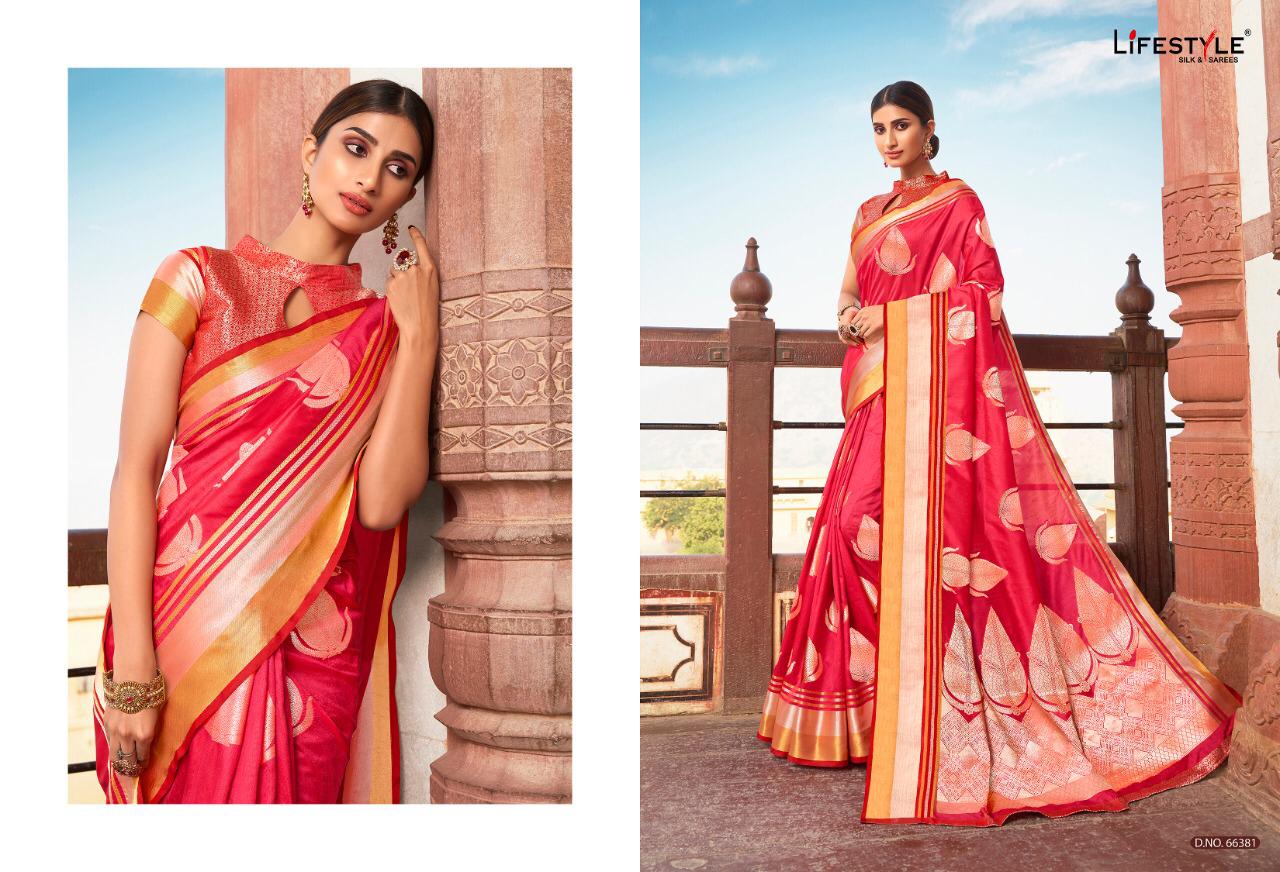 Brand - Lifestyel. Catlog name - CHANDRAKAL VOL-6. Rate- 1116 per Pcs . Fabric- Silk . Set to set . GST 5 Percent Extra. Delivery- READY |