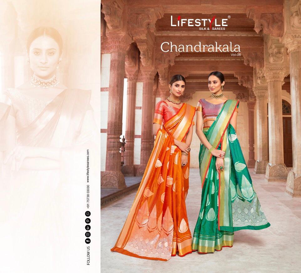 Buy Online Chandrakala Vol 6 By Lifestyle Silk Sarees Wholesale Supplier And Exporter India 6 Pcs of Full Catalogue at Wholesale Price. Looking for Chandrakala Vol 6 By Lifestyle Silk Sarees Wholesale Supplier And Exporter India Full Catalouge at Best Price? Buy Now Chandrakala Vol 6 By Lifestyle Silk Sarees Wholesale Supplier And Exporter India at Wholesale Rate of Rs 6696 with Total 6 Pcs from authroized dealer and supplier of LIFESTYLE Brand. Cost of Each piece is just only Rs 1116 which is very low and affordable price to resale the product in your retail store ,This is Surat based Wholesale Supplier & Dealer of LIFESTYLE Brand. Click on Brand name to Know more about LIFESTYLE Brand's products.Call or Whatsapp on 9898838984 for booking or enquiry