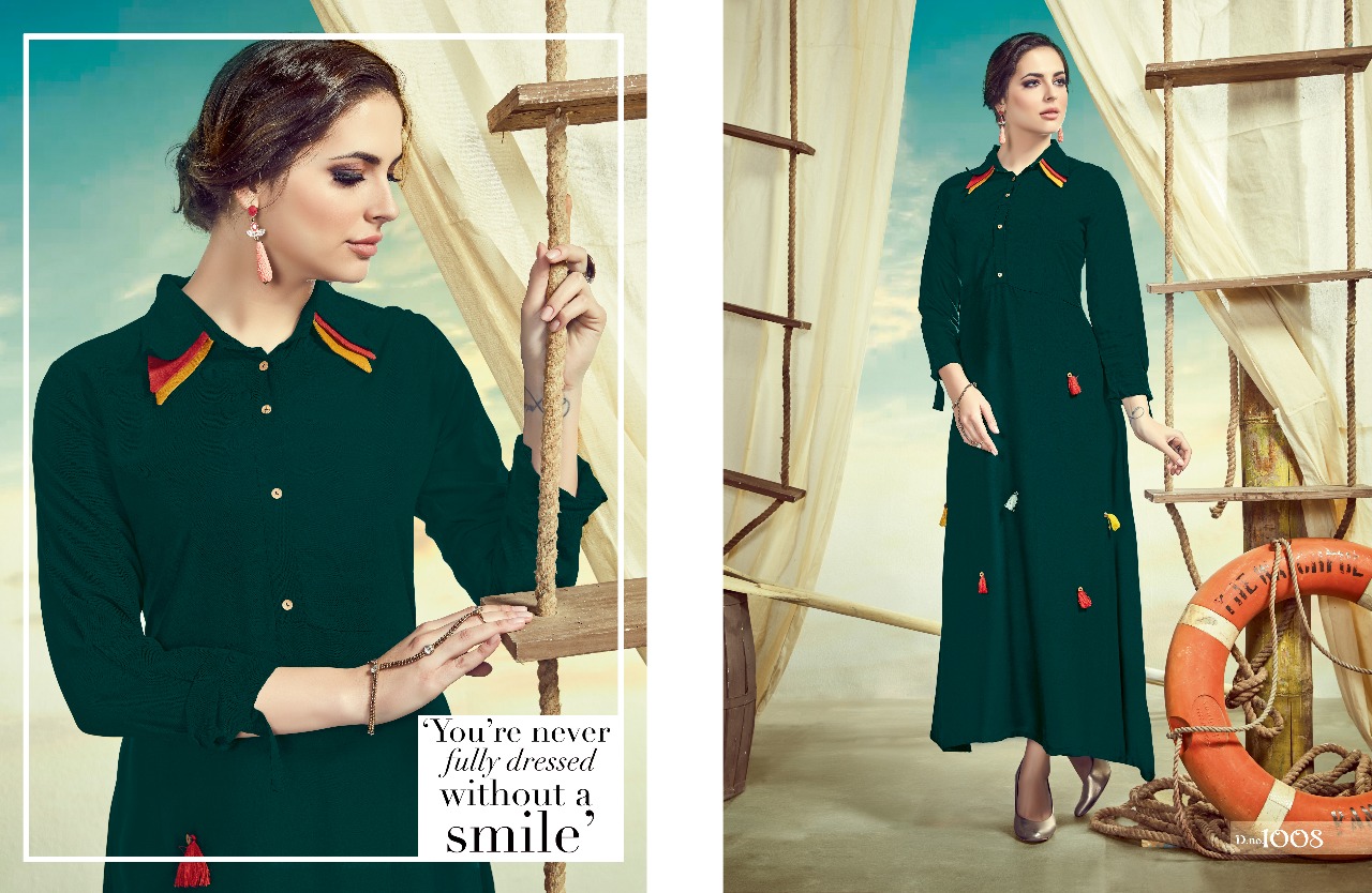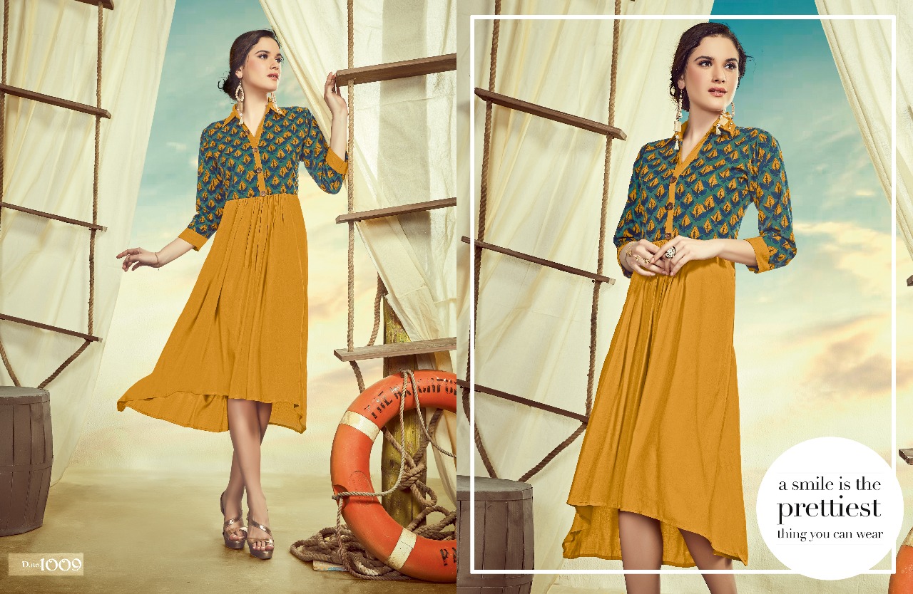 Channel 9 Corona 1001 Series Reyon Print Kurti Dealer Surat