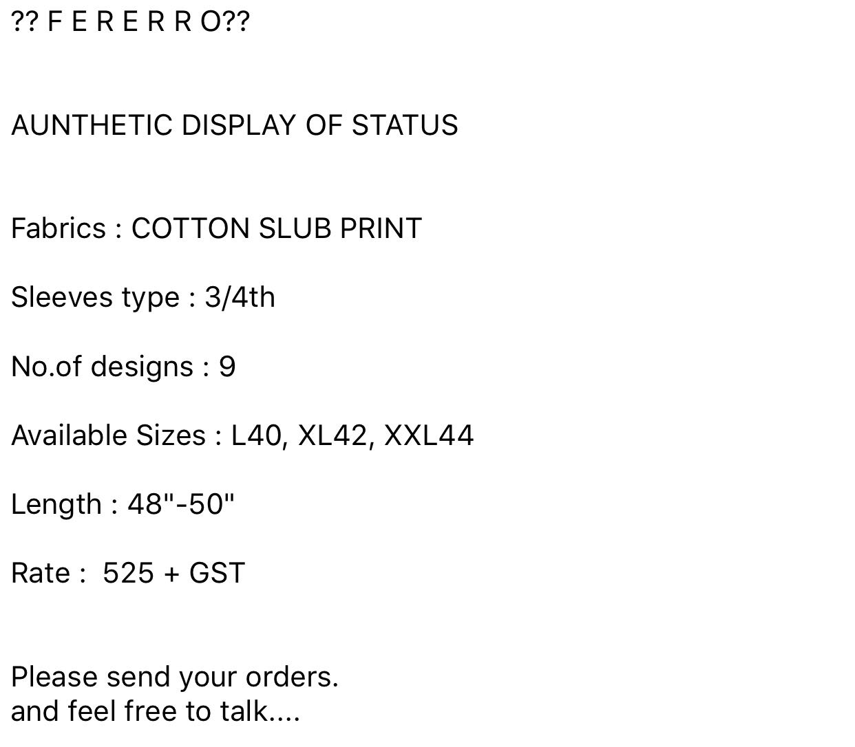Buy Online Channel 9 Ferrero 5001 Series Fancy Cotton Slub Printed Kurti Collection Wholesale Price Kurti Wholesale Dealer Surat 9 Pcs of Full Catalogue at Wholesale Price. Looking for Channel 9 Ferrero 5001 Series Fancy Cotton Slub Printed Kurti Collection Wholesale Price Kurti Wholesale Dealer Surat Full Catalouge at Best Price? Buy Now Channel 9 Ferrero 5001 Series Fancy Cotton Slub Printed Kurti Collection Wholesale Price Kurti Wholesale Dealer Surat at Wholesale Rate of Rs 4725 with Total 9 Pcs from authroized dealer and supplier of CHENNEL 9 Brand. Cost of Each piece is just only Rs 525 which is very low and affordable price to resale the product in your retail store ,This is Surat based Wholesale Supplier & Dealer of CHENNEL 9 Brand. Click on Brand name to Know more about CHENNEL 9 Brand's products.Call or Whatsapp on 9898838984 for booking or enquiry