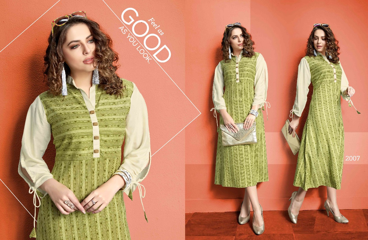 Buy Online Channel 9 Infinity Fancy Reyon Printed Kurti Dealer Surat 9 Pcs of Full Catalogue at Wholesale Price. Looking for Channel 9 Infinity Fancy Reyon Printed Kurti Dealer Surat Full Catalouge at Best Price? Buy Now Channel 9 Infinity Fancy Reyon Printed Kurti Dealer Surat at Wholesale Rate of Rs 5040 with Total 9 Pcs from authroized dealer and supplier of CHENNEL 9 Brand. Cost of Each piece is just only Rs 560 which is very low and affordable price to resale the product in your retail store ,This is Surat based Wholesale Supplier & Dealer of CHENNEL 9 Brand. Click on Brand name to Know more about CHENNEL 9 Brand's products.Call or Whatsapp on 9898838984 for booking or enquiry