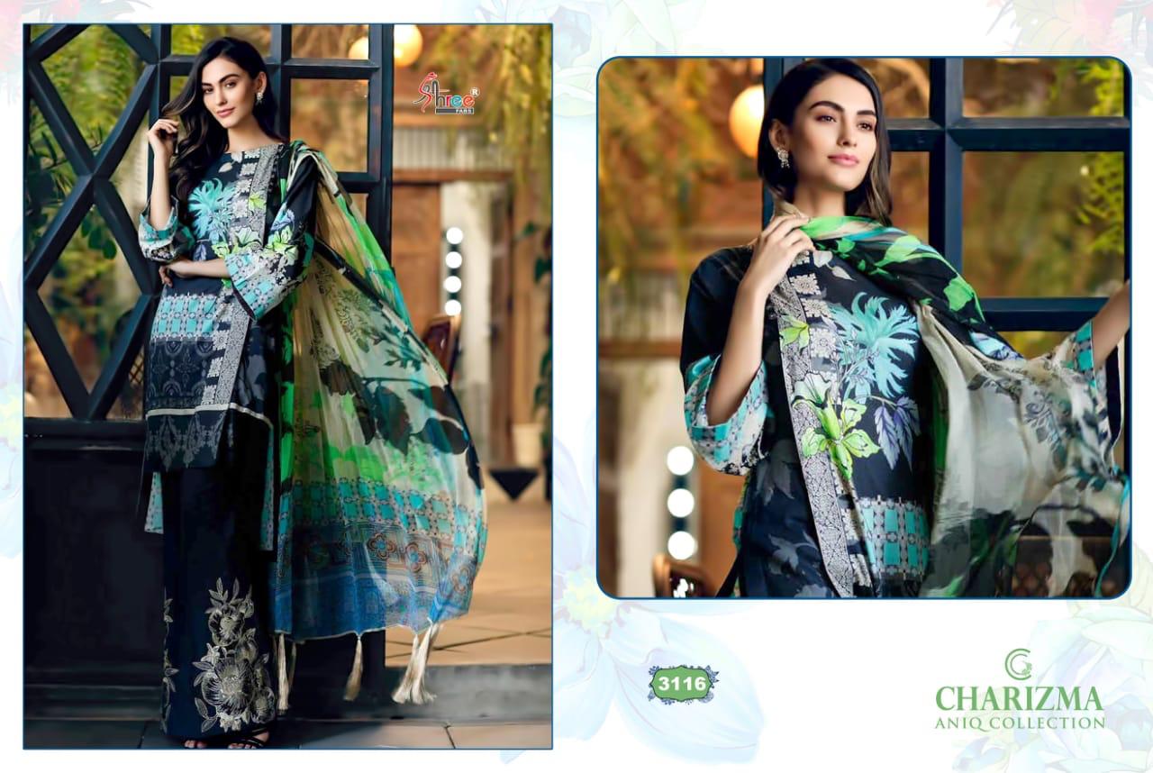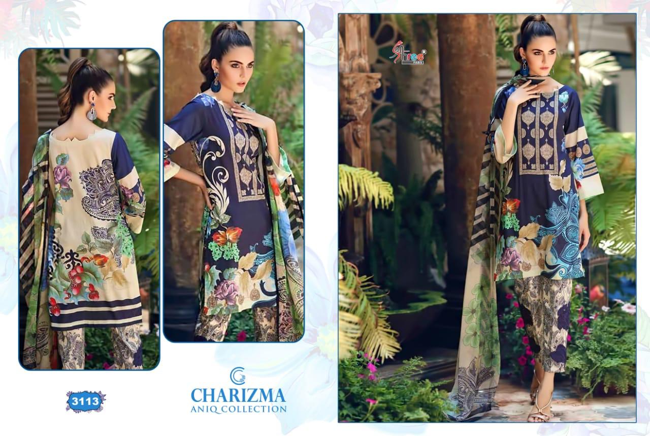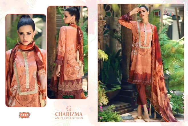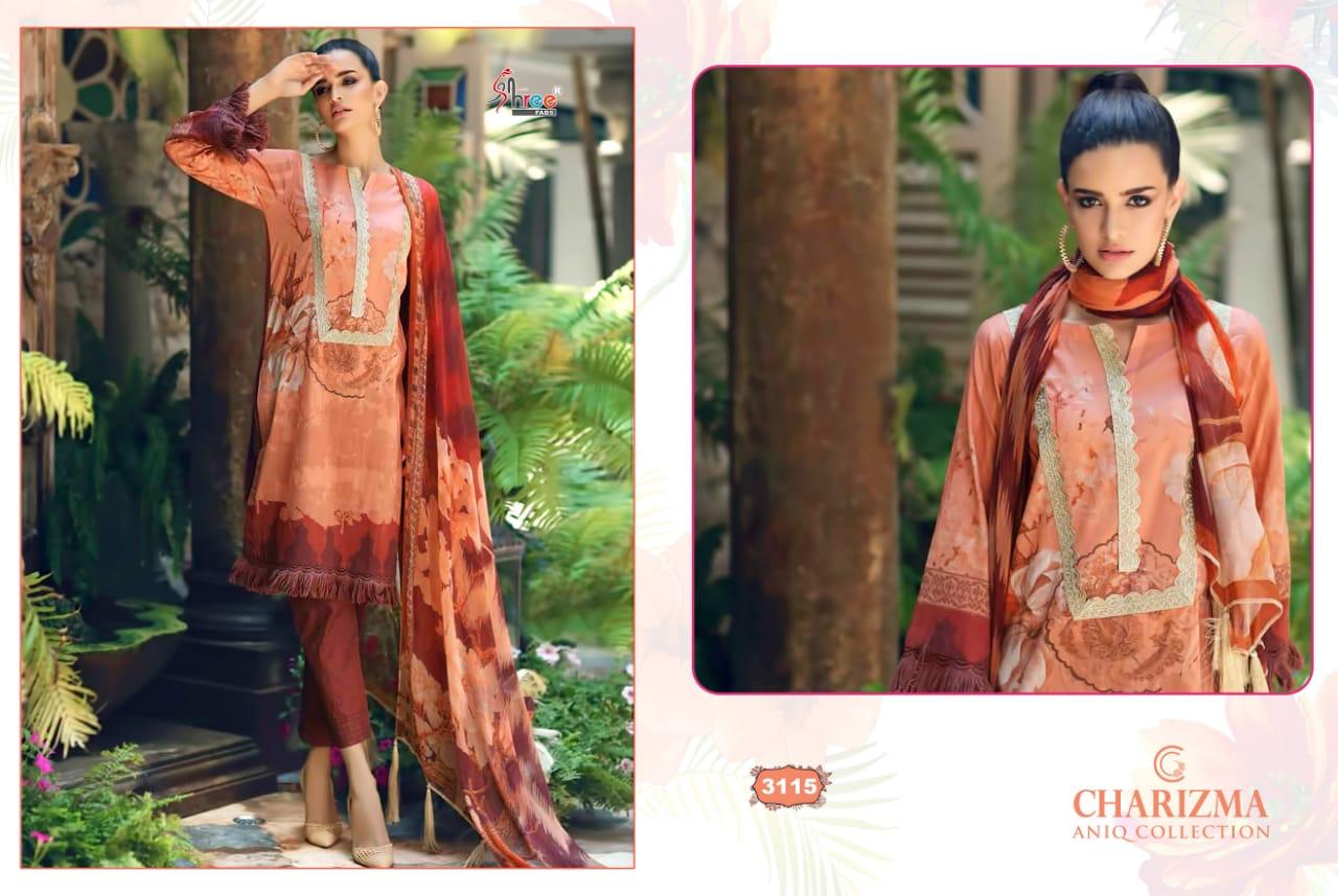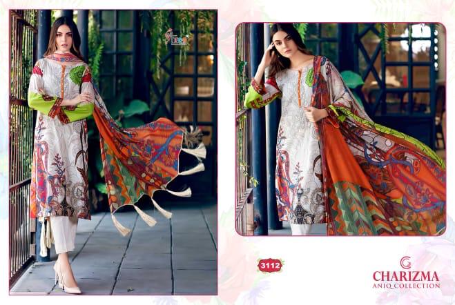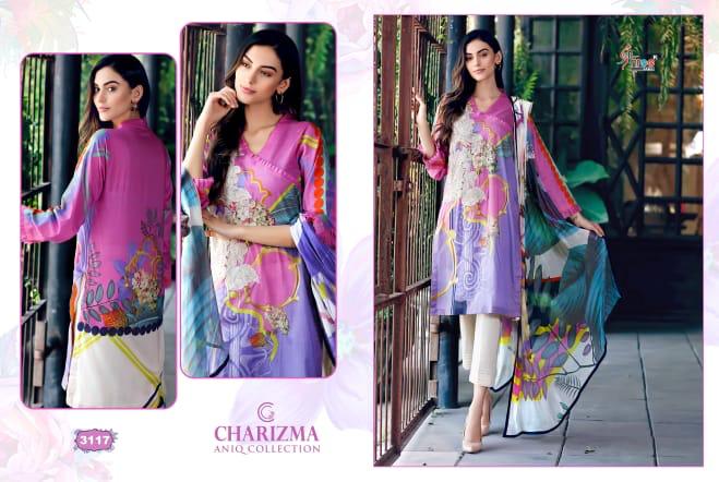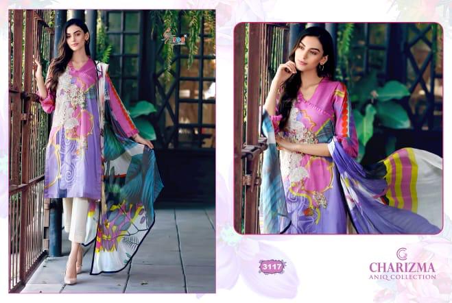 CHARISHMA ANIQ COLLECTION TOP PURE COTTON PRINT WITH EMBRODERY BOTTOM SEMILAWN DYED 1 DES PRINTED COTTON DUPPTA SIFFON PRINT DES 8 Rate 599 Shree fabs surat |