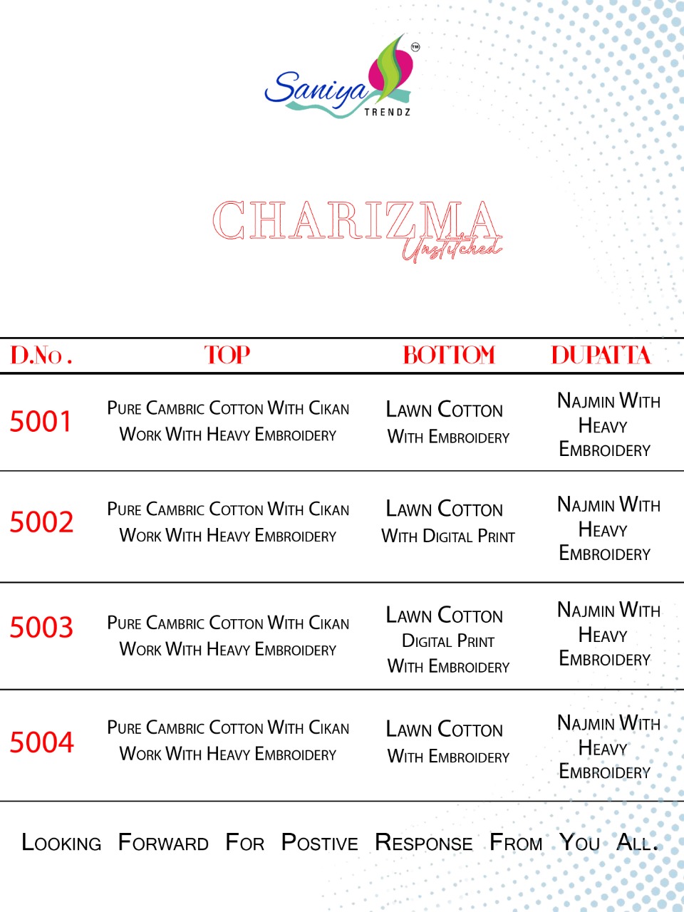 Charizma Unstitched 19 By Saaniya Trendz Cambric Cotton Dress Materials Wholesale Supplier India
