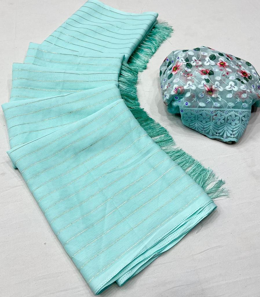 * New Cataloge Launch ? * ?? *Brand- LT Fabrics(Kashvi Creation )* ??**CATLOGUE* - * CHARMI* ??**Fabric * *- Rainbow Zari With Fancy Work Blouse ? * ?? * Price:- 450/- Only Included Gst * SINGLE AVAILABLE ?Book Fast ?Ready Stock *?We Believe In Quality ?* 100+single |