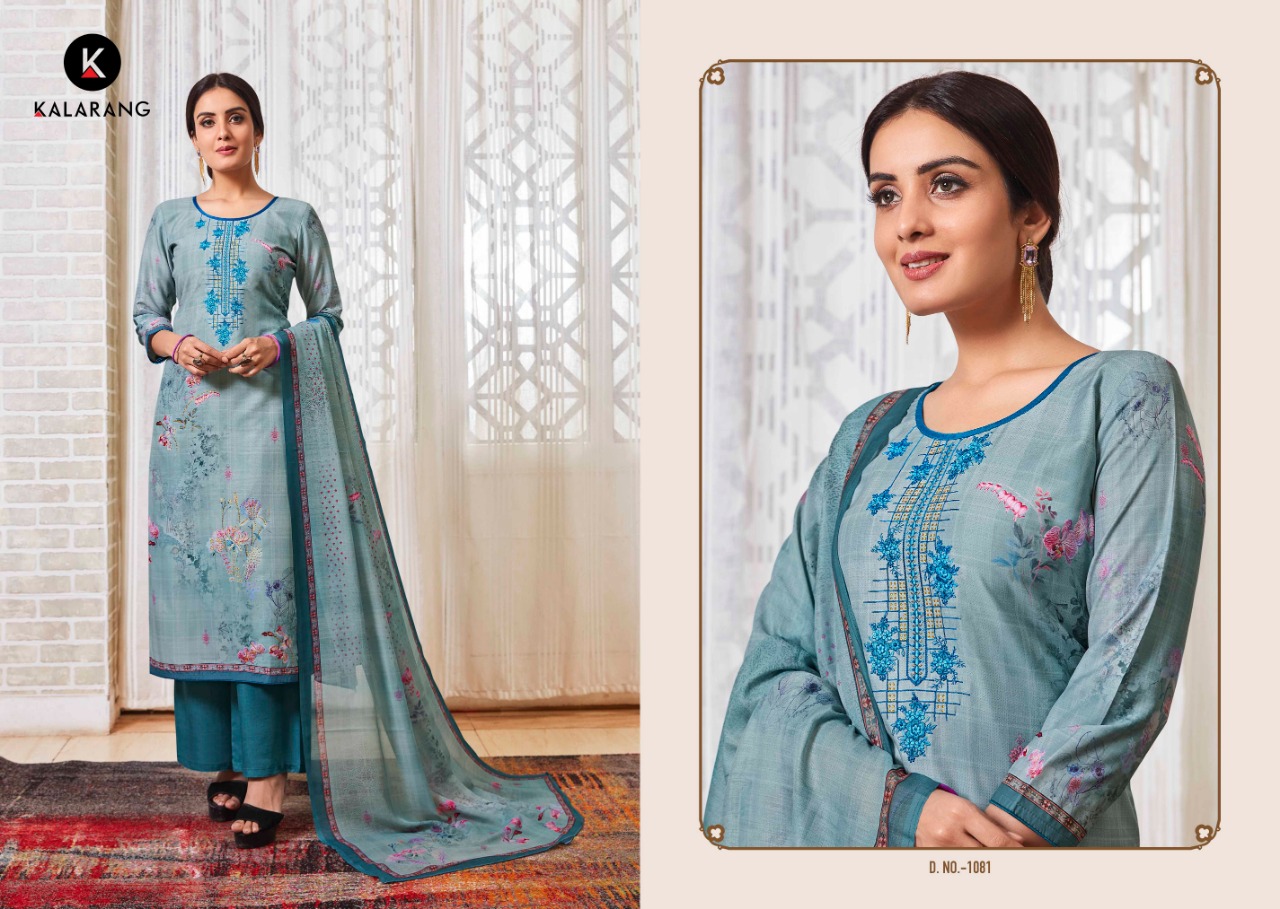 ? *Kalarang.* has launched _Catalog name_ : *Charming* ? _Fabric Details_ ? ?Top :- DIGITAL MUSLIN PRINT WITH EMBROIDERY WORK AND SWAROVSKI DIAMOND WORK ?Bottom:- SLUB RAYON (CUT 2.70) ?Dupatta:- DIGITAL MUSLIN PRINT ?Total Design :- 4 ?Dispatching 5 to 6 days later Rate 895 ?Booking started from now... ?Order yours soon.. |