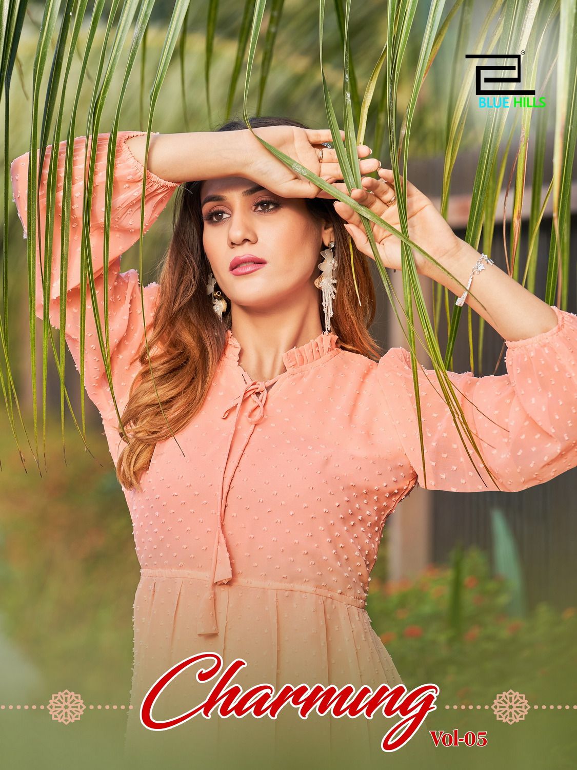 Buy Online Charming Vol 5 Blue Hills Tunic Style Georgette Kurti 8 Pcs of Full Catalogue at Wholesale Price. Looking for Charming Vol 5 Blue Hills Tunic Style Georgette Kurti Full Catalouge at Best Price? Buy Now Charming Vol 5 Blue Hills Tunic Style Georgette Kurti at Wholesale Rate of Rs 3600 with Total 8 Pcs from authroized dealer and supplier of Blue hills Brand. Cost of Each piece is just only Rs 450 which is very low and affordable price to resale the product in your retail store ,This is Surat based Wholesale Supplier & Dealer of Blue hills Brand. Click on Brand name to Know more about Blue hills Brand's products.Call or Whatsapp on 9898838984 for booking or enquiry