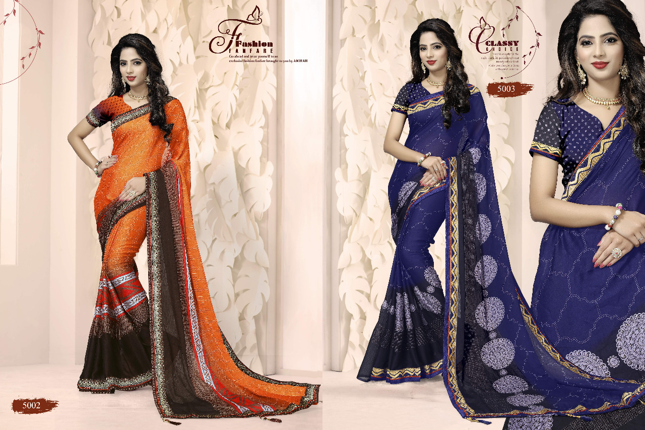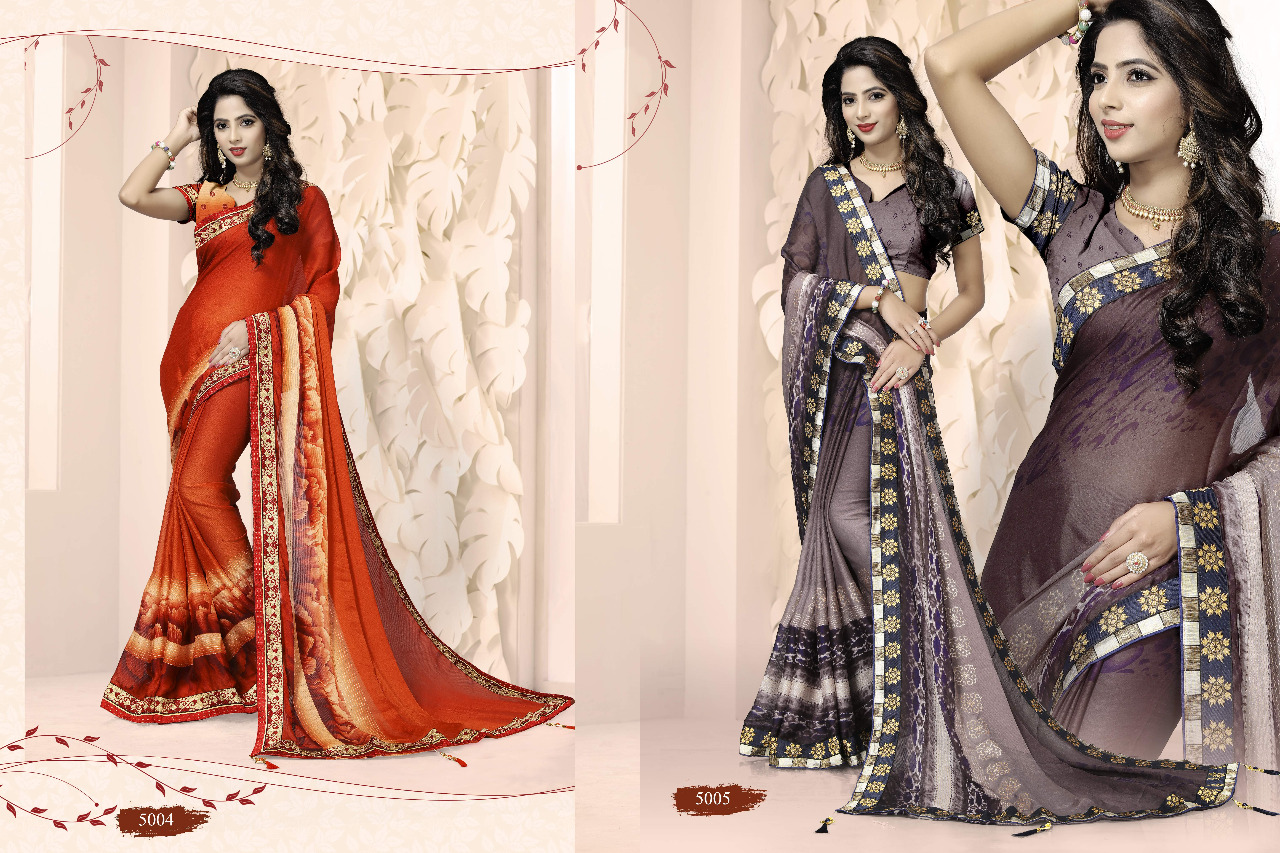 Buy Online Charvi By Jalnidhi 5001 Series Fancy Moss Chiffon Printed Saree Catlog Wholesale Dealer Surat 8 Pcs of Full Catalogue at Wholesale Price. Looking for Charvi By Jalnidhi 5001 Series Fancy Moss Chiffon Printed Saree Catlog Wholesale Dealer Surat Full Catalouge at Best Price? Buy Now Charvi By Jalnidhi 5001 Series Fancy Moss Chiffon Printed Saree Catlog Wholesale Dealer Surat at Wholesale Rate of Rs 5200 with Total 8 Pcs from authroized dealer and supplier of Jalnidhi sarees Brand. Cost of Each piece is just only Rs 650 which is very low and affordable price to resale the product in your retail store ,This is Surat based Wholesale Supplier & Dealer of Jalnidhi sarees Brand. Click on Brand name to Know more about Jalnidhi sarees Brand's products.Call or Whatsapp on 9898838984 for booking or enquiry