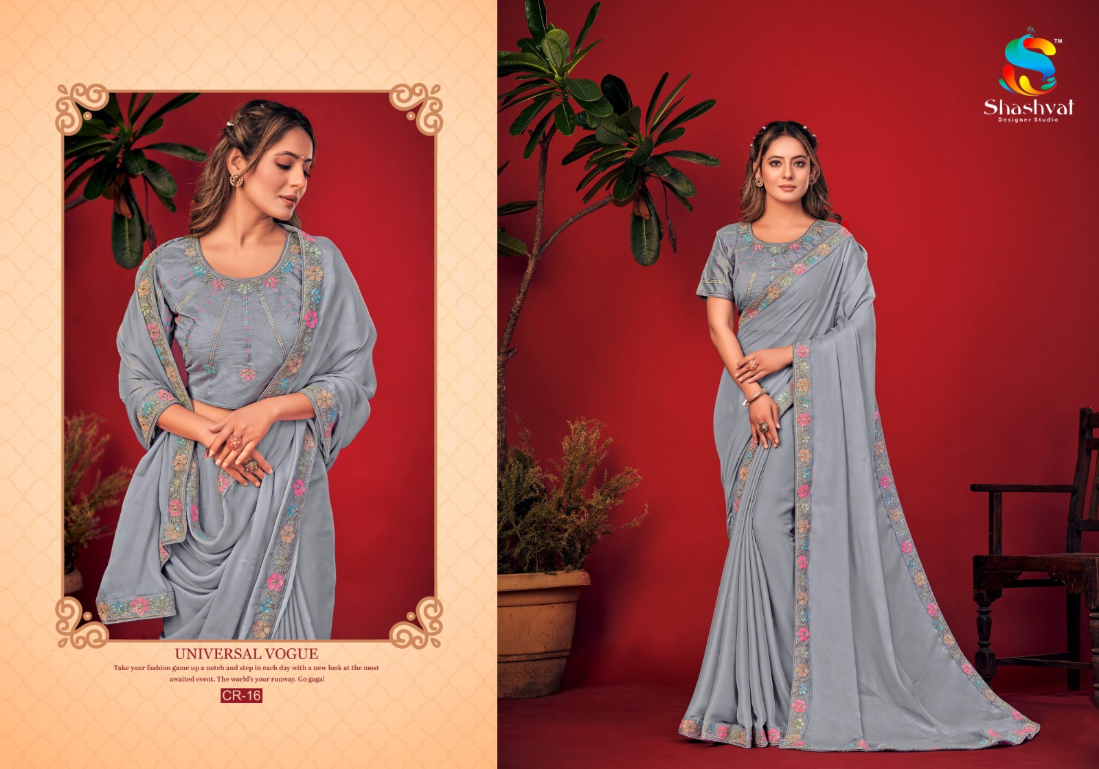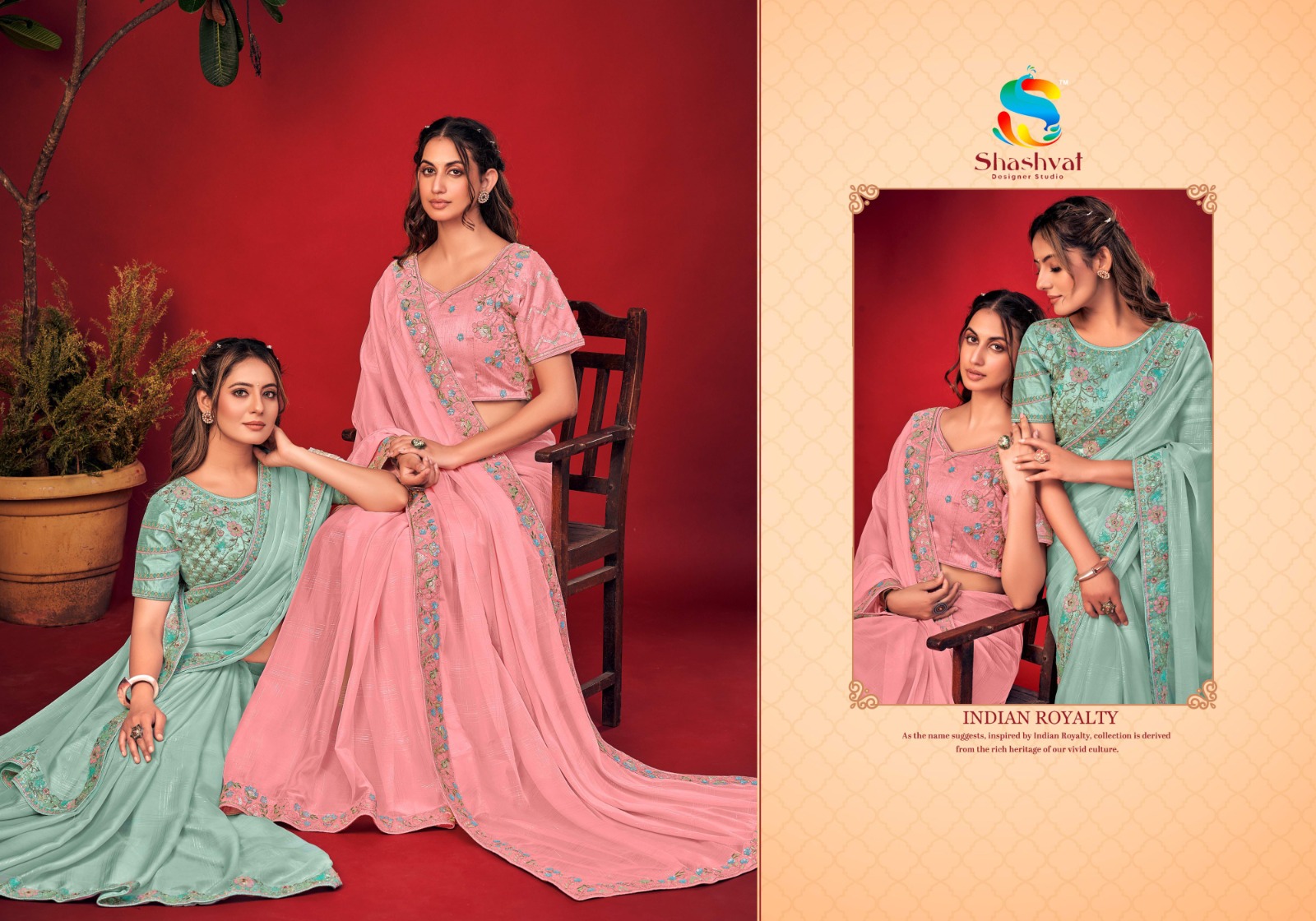 Charvi By Shashvat Designer Studio Fancy Embroidery Sarees Collection Surat