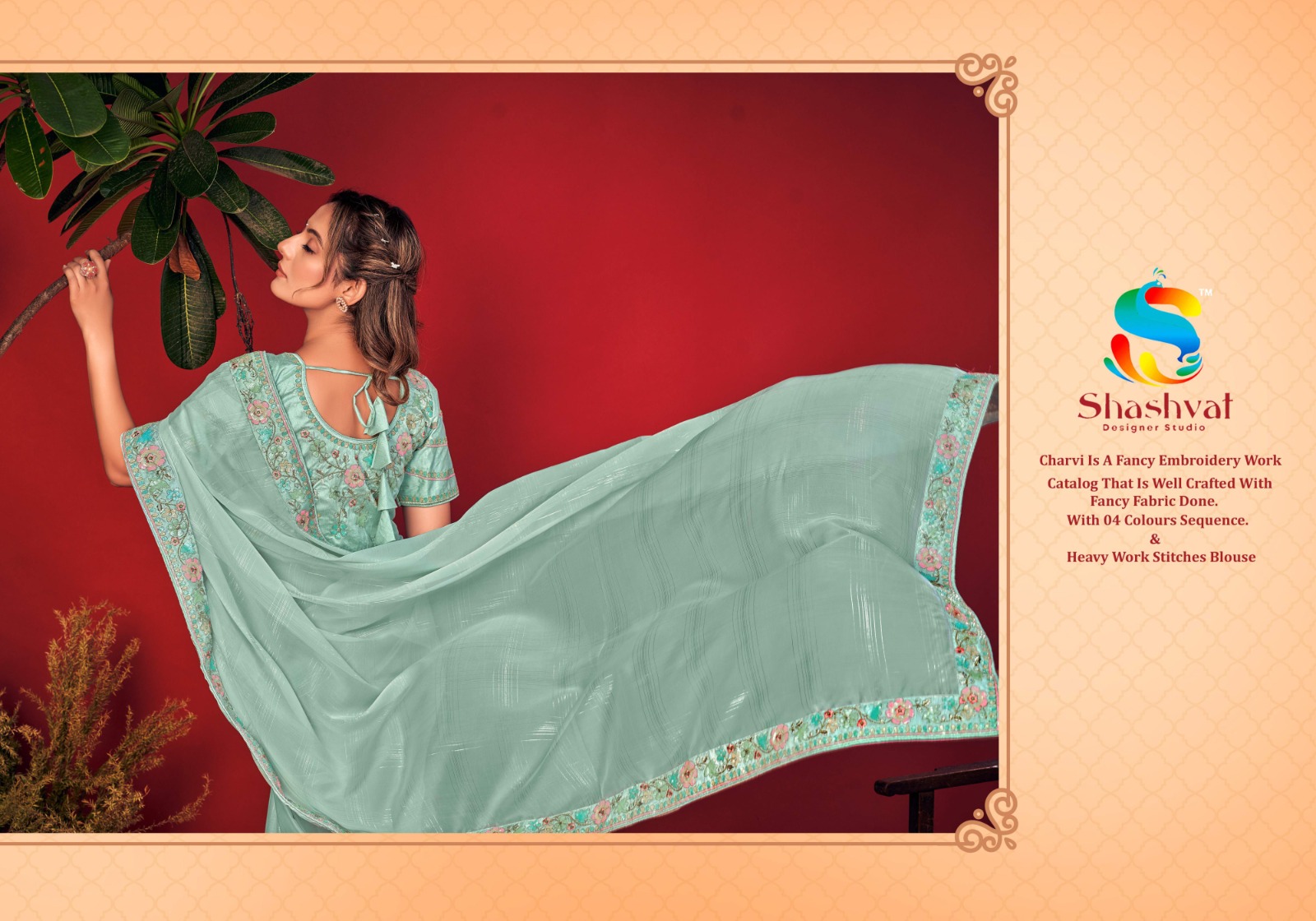 Buy Online Charvi By Shashvat Designer Studio Fancy Embroidery Sarees Collection Surat 9 Pcs of Full Catalogue at Wholesale Price. Looking for Charvi By Shashvat Designer Studio Fancy Embroidery Sarees Collection Surat Full Catalouge at Best Price? Buy Now Charvi By Shashvat Designer Studio Fancy Embroidery Sarees Collection Surat at Wholesale Rate of Rs 0 with Total 9 Pcs from authroized dealer and supplier of Brand. Cost of Each piece is just only Rs 0 which is very low and affordable price to resale the product in your retail store ,This is Surat based Wholesale Supplier & Dealer of Brand. Click on Brand name to Know more about Brand's products.Call or Whatsapp on 9898838984 for booking or enquiry