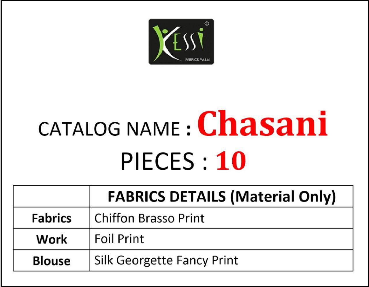 Buy Online Chasani By Kessi Designer Sarees Wholesale Supplier Gujarat 10 Pcs of Full Catalogue at Wholesale Price. Looking for Chasani By Kessi Designer Sarees Wholesale Supplier Gujarat Full Catalouge at Best Price? Buy Now Chasani By Kessi Designer Sarees Wholesale Supplier Gujarat at Wholesale Rate of Rs 7990 with Total 10 Pcs from authroized dealer and supplier of KESSI Brand. Cost of Each piece is just only Rs 799 which is very low and affordable price to resale the product in your retail store ,This is Surat based Wholesale Supplier & Dealer of KESSI Brand. Click on Brand name to Know more about KESSI Brand's products.Call or Whatsapp on 9898838984 for booking or enquiry