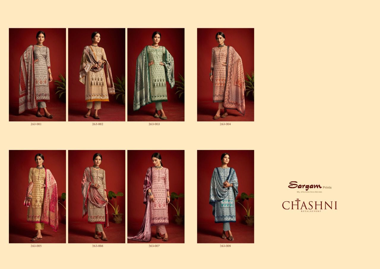 Buy Online Chashni By Sargam Suit Wholesale Supplier Traders In Surat 8 Pcs of Full Catalogue at Wholesale Price. Looking for Chashni By Sargam Suit Wholesale Supplier Traders In Surat Full Catalouge at Best Price? Buy Now Chashni By Sargam Suit Wholesale Supplier Traders In Surat at Wholesale Rate of Rs 9000 with Total 8 Pcs from authroized dealer and supplier of SARGAM PRINTS Brand. Cost of Each piece is just only Rs 1125 which is very low and affordable price to resale the product in your retail store ,This is Surat based Wholesale Supplier & Dealer of SARGAM PRINTS Brand. Click on Brand name to Know more about SARGAM PRINTS Brand's products.Call or Whatsapp on 9898838984 for booking or enquiry