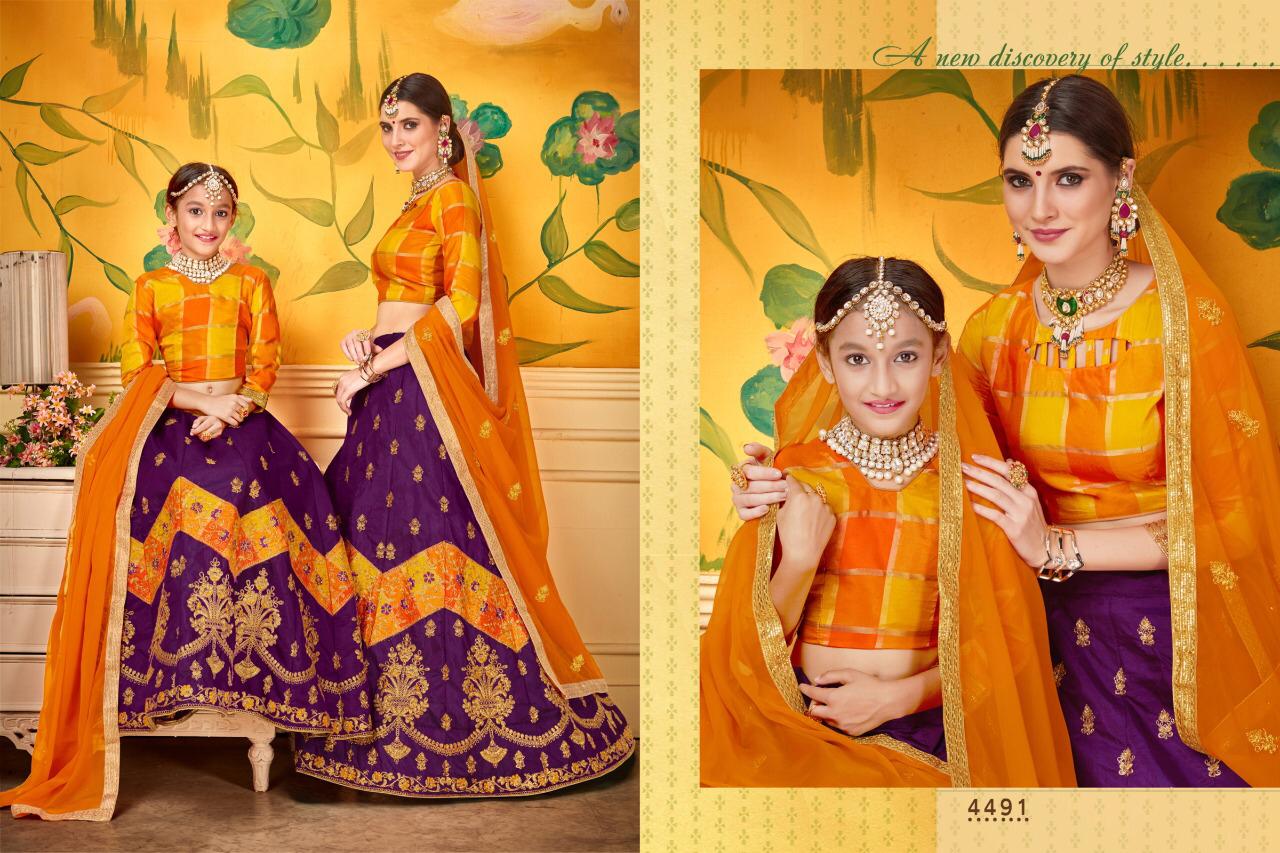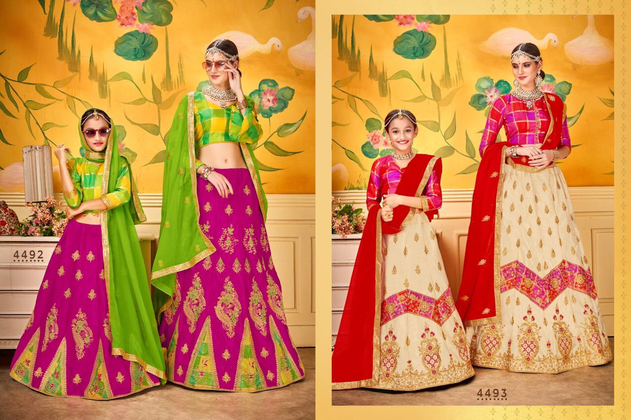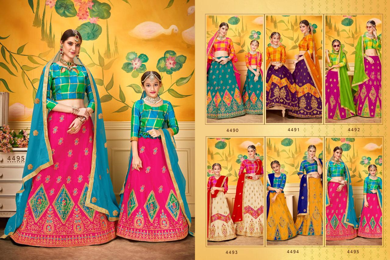 Check And Mate By Sanskar Style Designer Party Wear Lehngas Mom Daughter Collection Wholesale Supplier And Dealer Surat