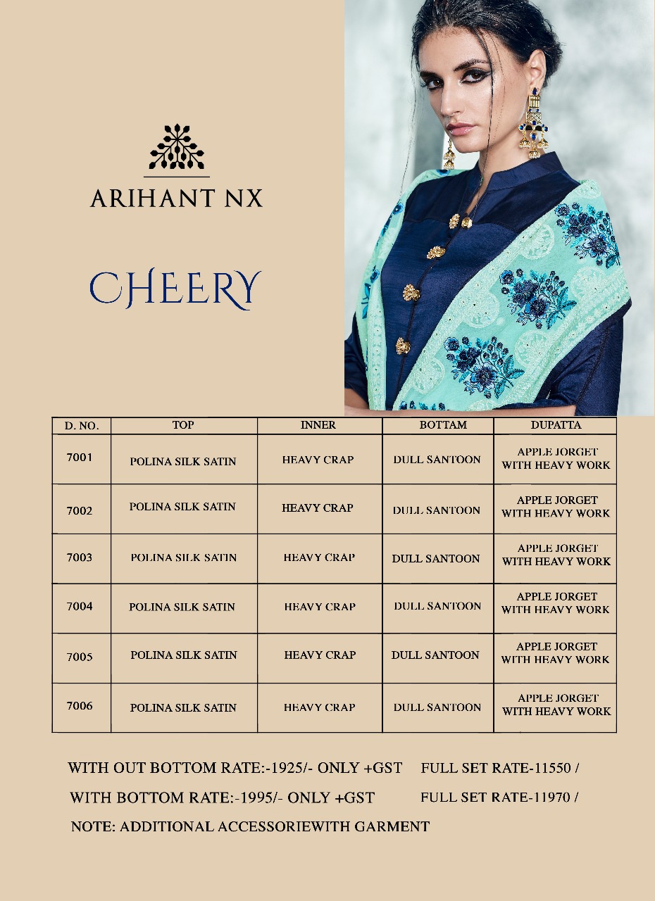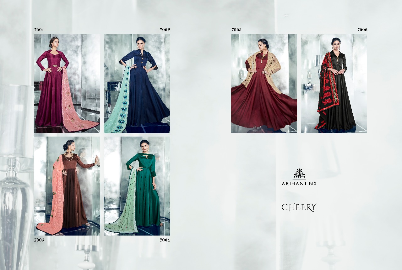 Buy Online Cheery Series 7001 By Arihant Nx Readymade Gown Wholesale Supplier And Dealer Surat 6 Pcs of Full Catalogue at Wholesale Price. Looking for Cheery Series 7001 By Arihant Nx Readymade Gown Wholesale Supplier And Dealer Surat Full Catalouge at Best Price? Buy Now Cheery Series 7001 By Arihant Nx Readymade Gown Wholesale Supplier And Dealer Surat at Wholesale Rate of Rs 11550 with Total 6 Pcs from authroized dealer and supplier of ARIHANT NX Brand. Cost of Each piece is just only Rs 1925 which is very low and affordable price to resale the product in your retail store ,This is Surat based Wholesale Supplier & Dealer of ARIHANT NX Brand. Click on Brand name to Know more about ARIHANT NX Brand's products.Call or Whatsapp on 9898838984 for booking or enquiry