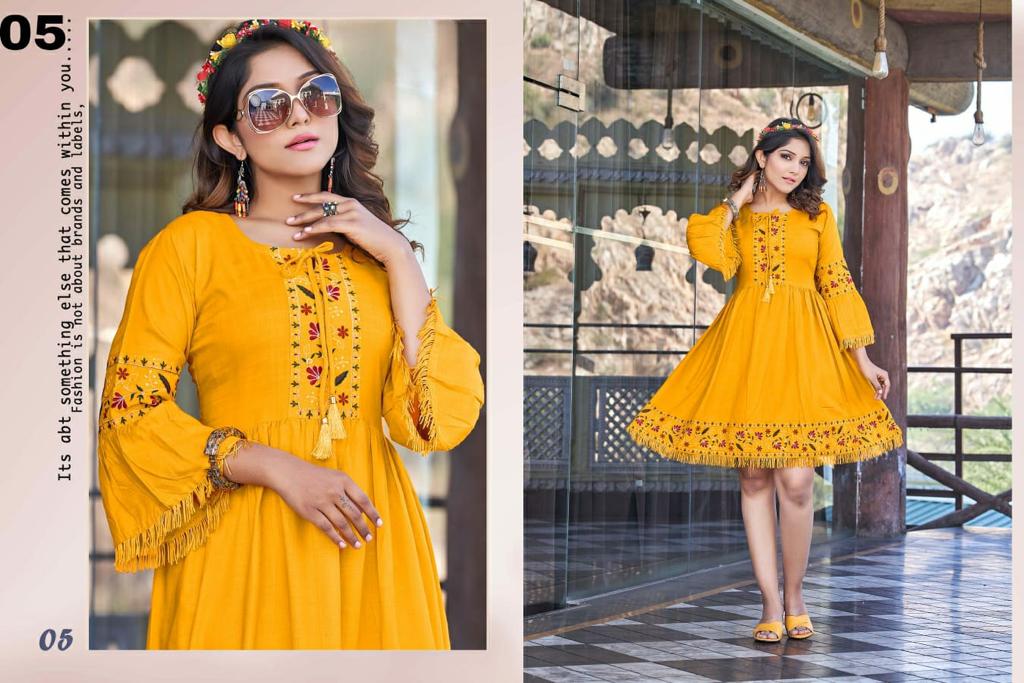 Launching New Catalouge Catalouge : ? *Cherry* ? *Fancy Shorties* Cherry Fancy Shorties by tips tops Single and set avaialable wholesale Fabric : *Reyon 16kg Slub* Spec. : *Heavy Embroidery Work with Lace* Sleeves type : *3/4th* No.of Designs : *6* Size : *M38, L40, XL42, XXL44* Length : *36"* Flair : *80"* *Single available + Shipping* *Dispatch After 4-5 Days* 9898838984 for update and rate |
