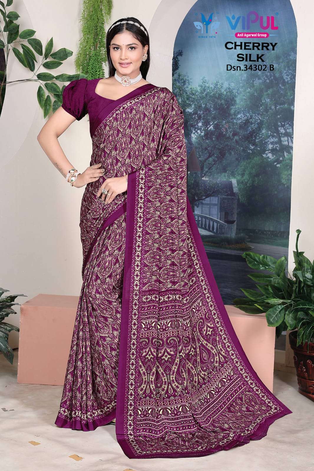 cherry silk 34302 by Vipul saree collection manufacturers surat