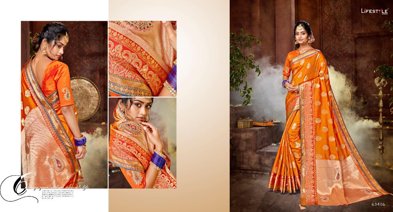 Buy Online Chetna By Lifestyle Banarasi Silk Sarees Wholesale Supplier Gujarat 6 Pcs of Full Catalogue at Wholesale Price. Looking for Chetna By Lifestyle Banarasi Silk Sarees Wholesale Supplier Gujarat Full Catalouge at Best Price? Buy Now Chetna By Lifestyle Banarasi Silk Sarees Wholesale Supplier Gujarat at Wholesale Rate of Rs 8130 with Total 6 Pcs from authroized dealer and supplier of LIFESTYLE Brand. Cost of Each piece is just only Rs 1355 which is very low and affordable price to resale the product in your retail store ,This is Surat based Wholesale Supplier & Dealer of LIFESTYLE Brand. Click on Brand name to Know more about LIFESTYLE Brand's products.Call or Whatsapp on 9898838984 for booking or enquiry