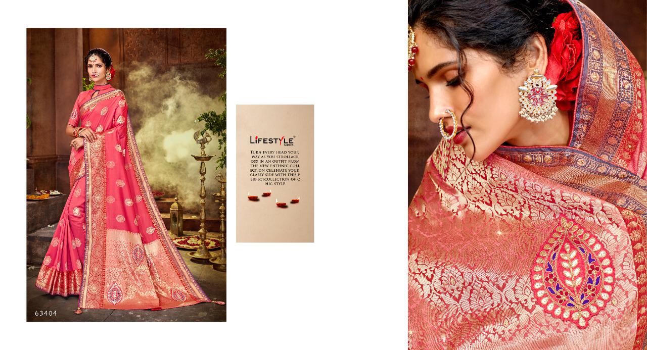 Buy Online Chetna By Lifestyle Silk Sarees Wholesale Supplier And Dealer Gujarat 6 Pcs of Full Catalogue at Wholesale Price. Looking for Chetna By Lifestyle Silk Sarees Wholesale Supplier And Dealer Gujarat Full Catalouge at Best Price? Buy Now Chetna By Lifestyle Silk Sarees Wholesale Supplier And Dealer Gujarat at Wholesale Rate of Rs 8142 with Total 6 Pcs from authroized dealer and supplier of LIFESTYLE Brand. Cost of Each piece is just only Rs 1357 which is very low and affordable price to resale the product in your retail store ,This is Surat based Wholesale Supplier & Dealer of LIFESTYLE Brand. Click on Brand name to Know more about LIFESTYLE Brand's products.Call or Whatsapp on 9898838984 for booking or enquiry
