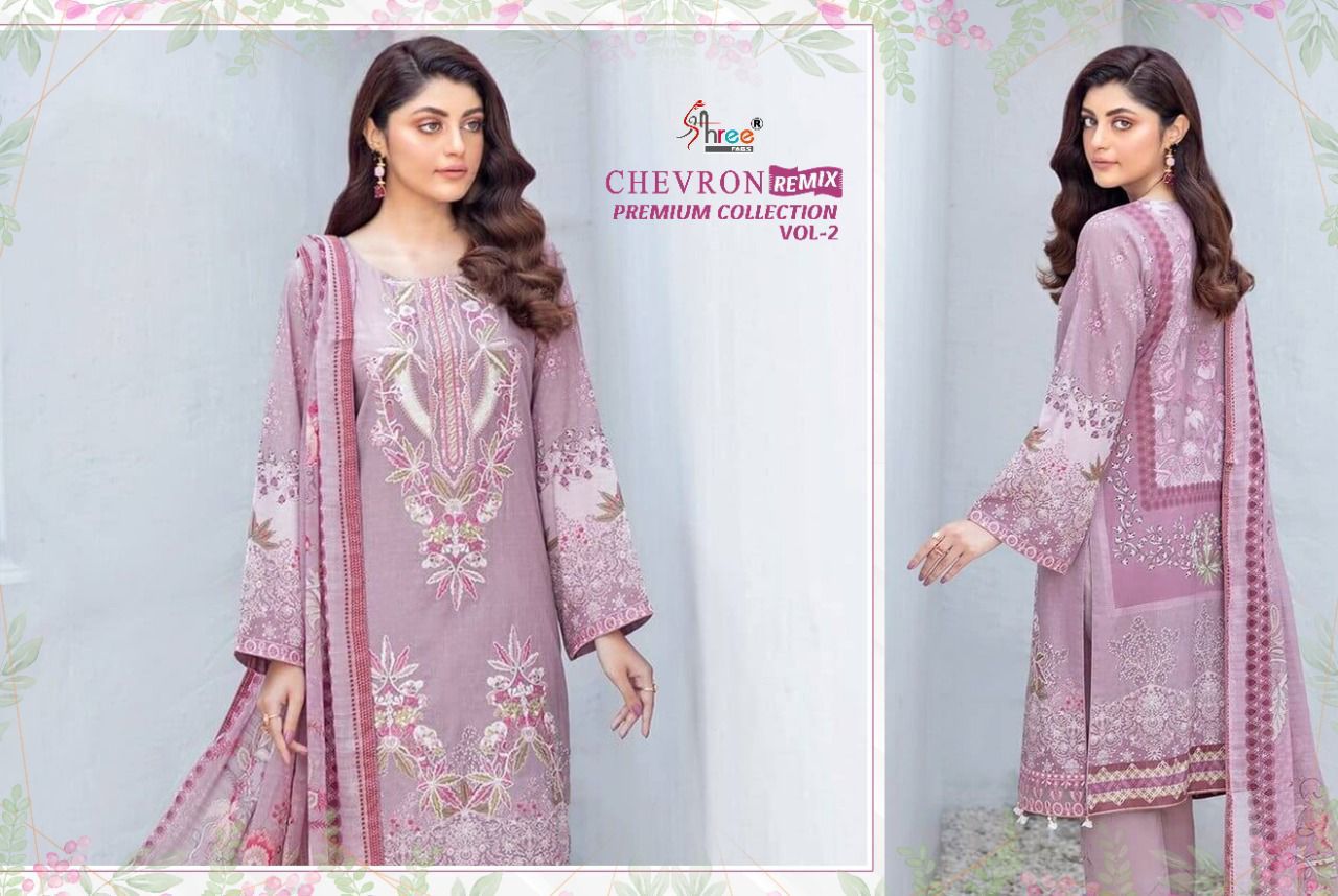 CHEVRON REMIX PREMIUM COLLECTION-02 TOP PURE LAWN COTTON WITH HEAVY SELF EMBROIDERY BOTTOM SEMILAWN DUPPTA SIFFON / COTTON DESIGNS 6 RATE SIFFON 851+gst COTTON 899+gst Shree fabs surat |
