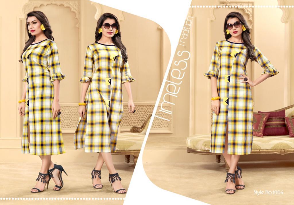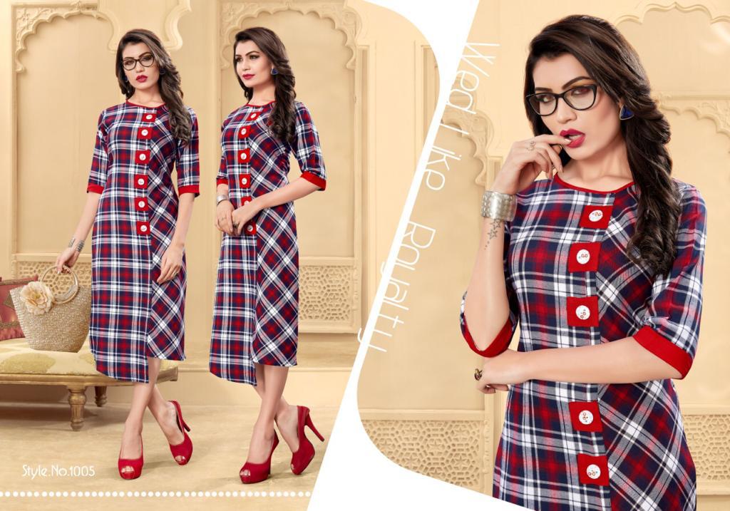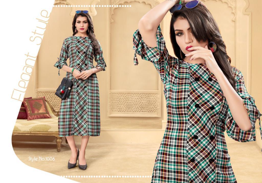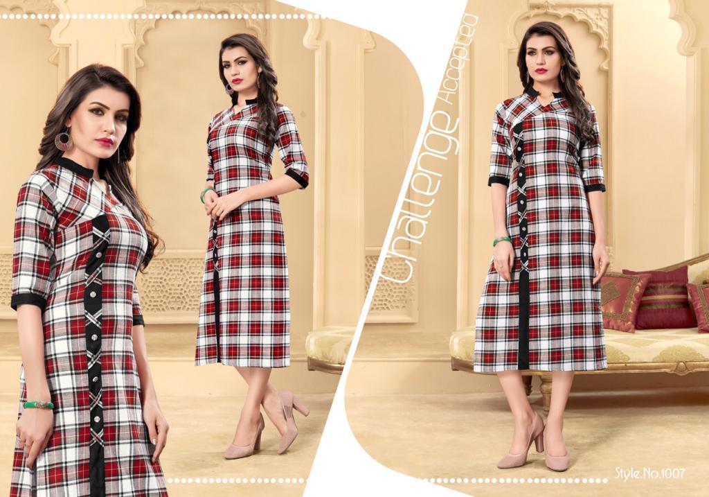 Chex By Vragi 1001 Series Fancy Weaving Reyon Chek Kurti Catlog Wholesale Dealer Surat
