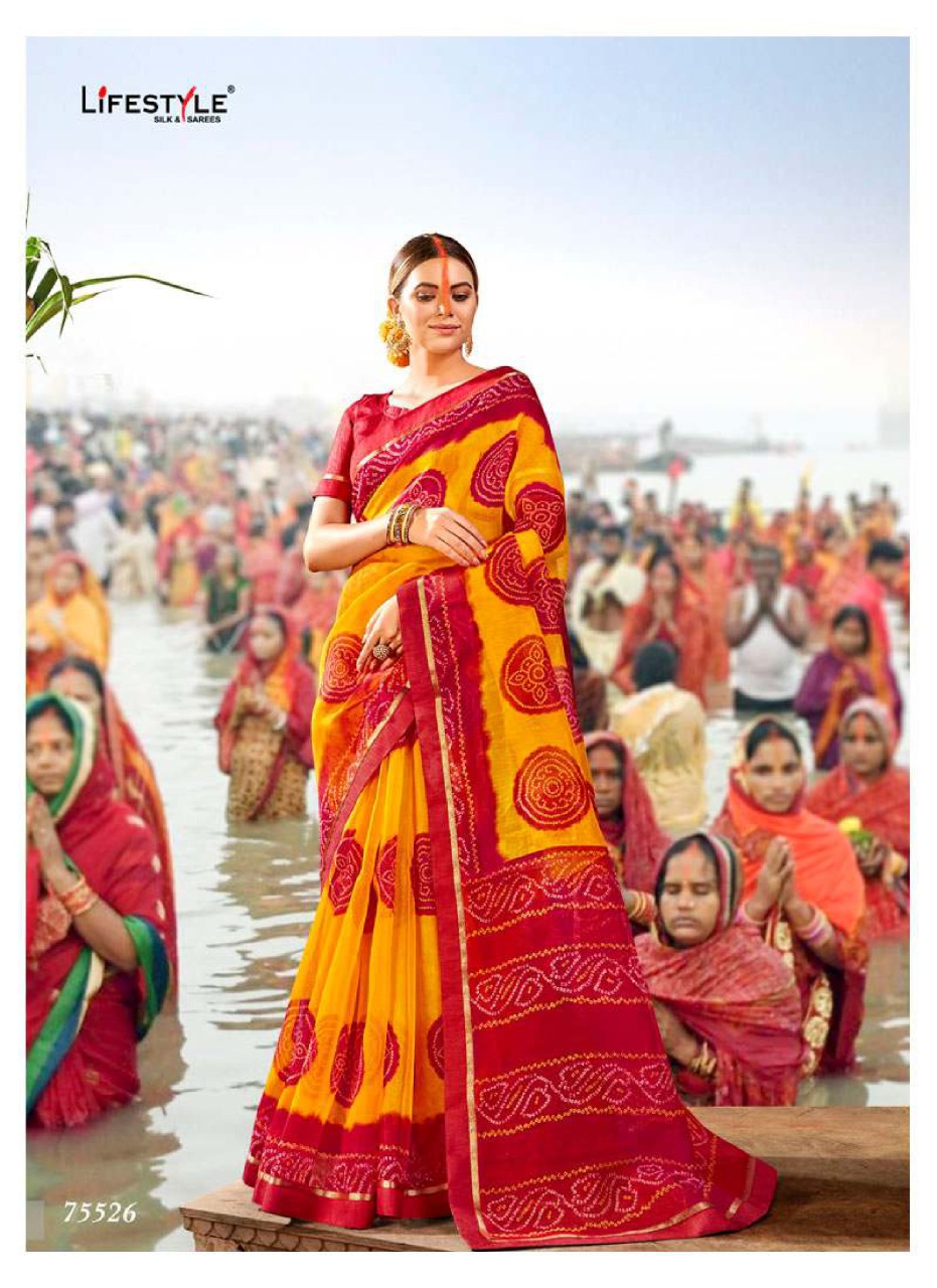 Brand = *LIFESTYLE* Catalog :- *CHHATH SPECIAL* Volume :- 1 Fabric :- *RAJJO NET* Packing :- BOX Price :- *516/- per pcs * Set to set Cut/Length :- 6.4 RAJJO NET COTTON PRINTED SAREE WITH LACE AND BLOUSE PACKING - IN THIS WEEK |