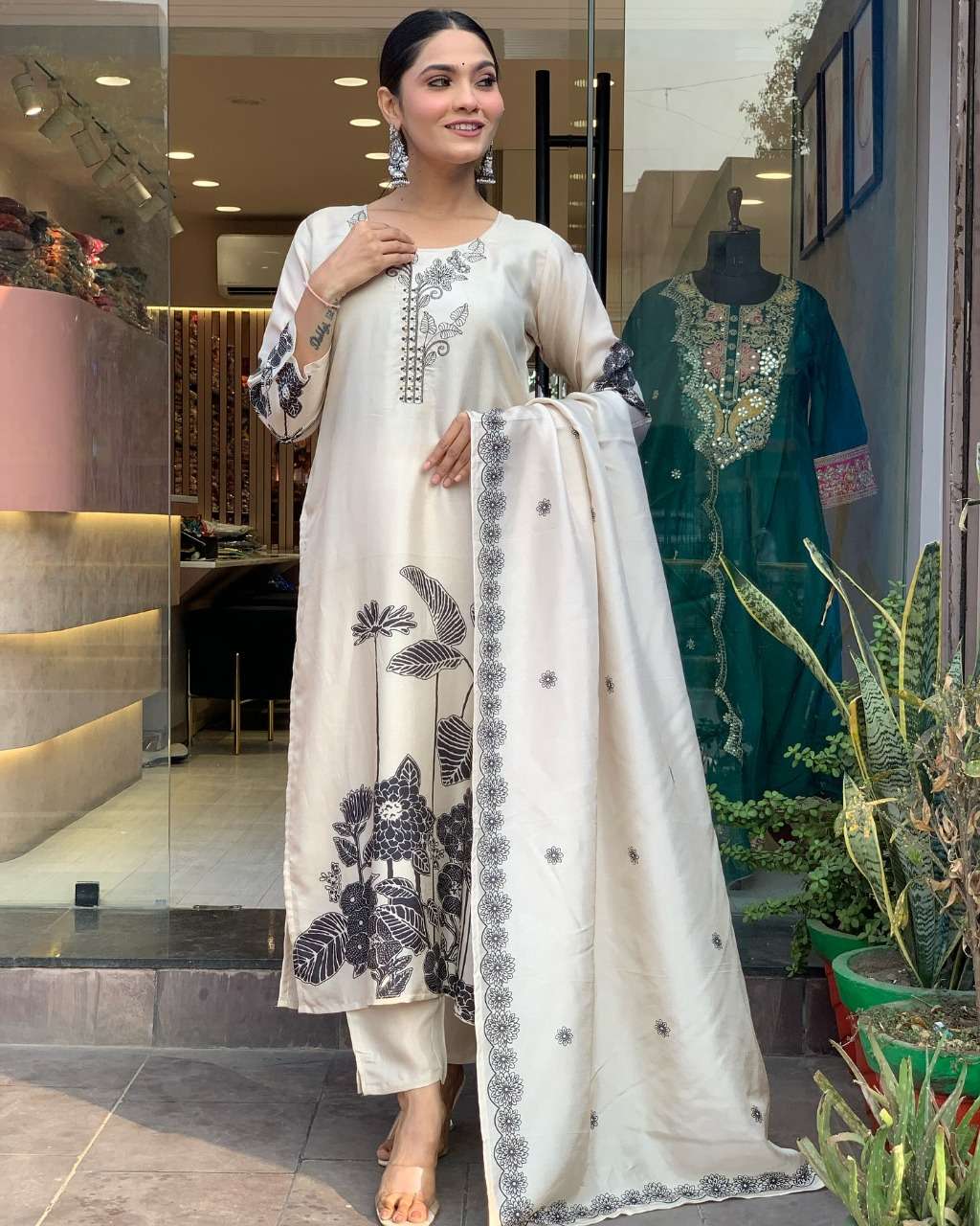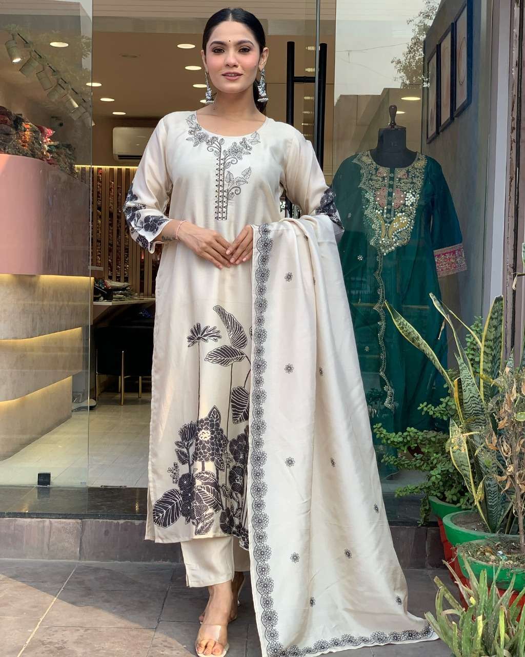 👗KURTA FABRIC: CHINNON SILK 👗PENT FABRIC:- GADHWAL 👗DUPATTA FABRIC:- CHINON PRINTED DUPATTA