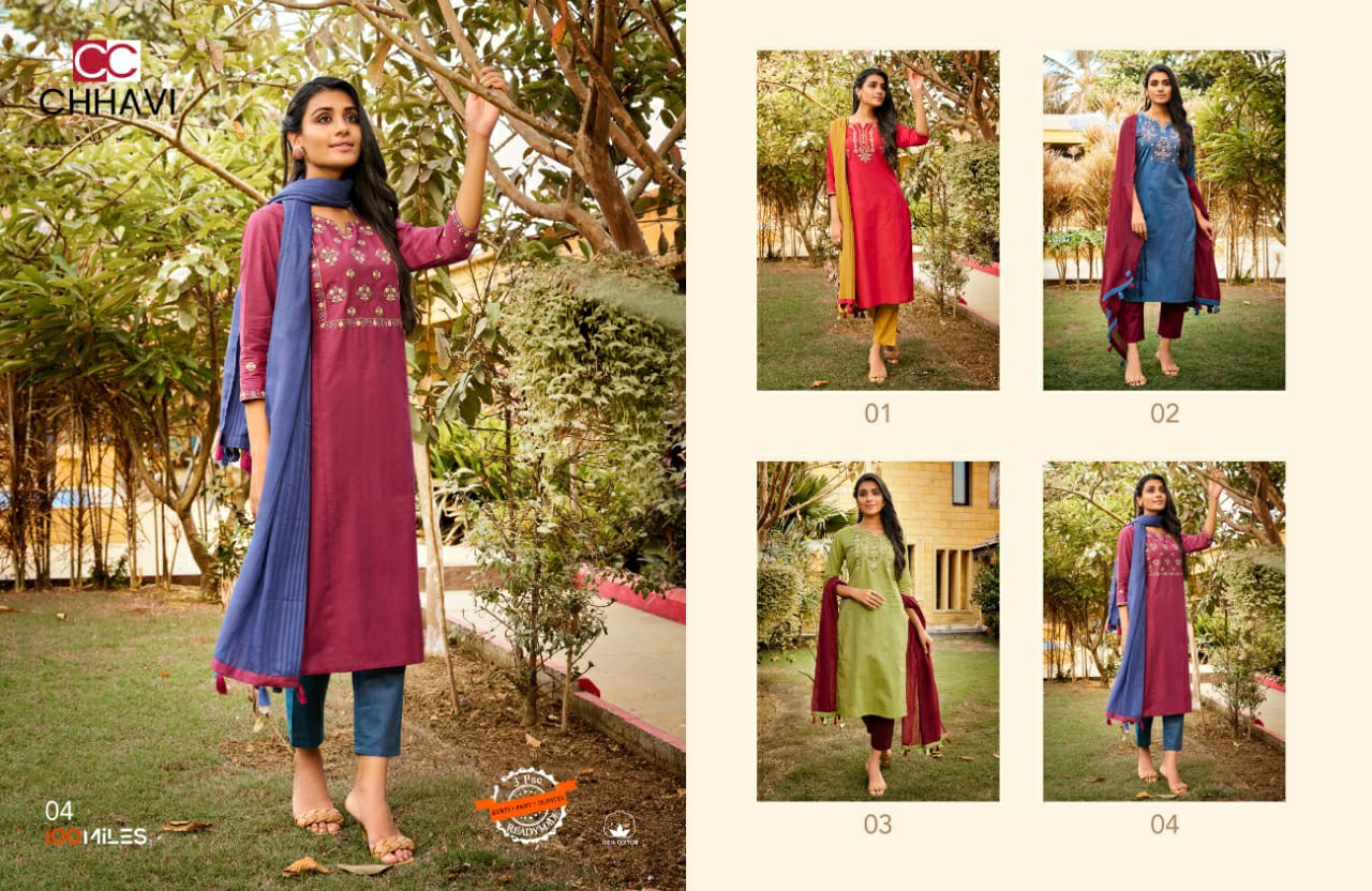 Buy Online Chhavi Kurti With Pant And Dupatta By 100 Miles Dealer And Exporter Surat 4 Pcs of Full Catalogue at Wholesale Price. Looking for Chhavi Kurti With Pant And Dupatta By 100 Miles Dealer And Exporter Surat Full Catalouge at Best Price? Buy Now Chhavi Kurti With Pant And Dupatta By 100 Miles Dealer And Exporter Surat at Wholesale Rate of Rs 3220 with Total 4 Pcs from authroized dealer and supplier of Brand. Cost of Each piece is just only Rs 805 which is very low and affordable price to resale the product in your retail store ,This is Surat based Wholesale Supplier & Dealer of Brand. Click on Brand name to Know more about Brand's products.Call or Whatsapp on 9898838984 for booking or enquiry