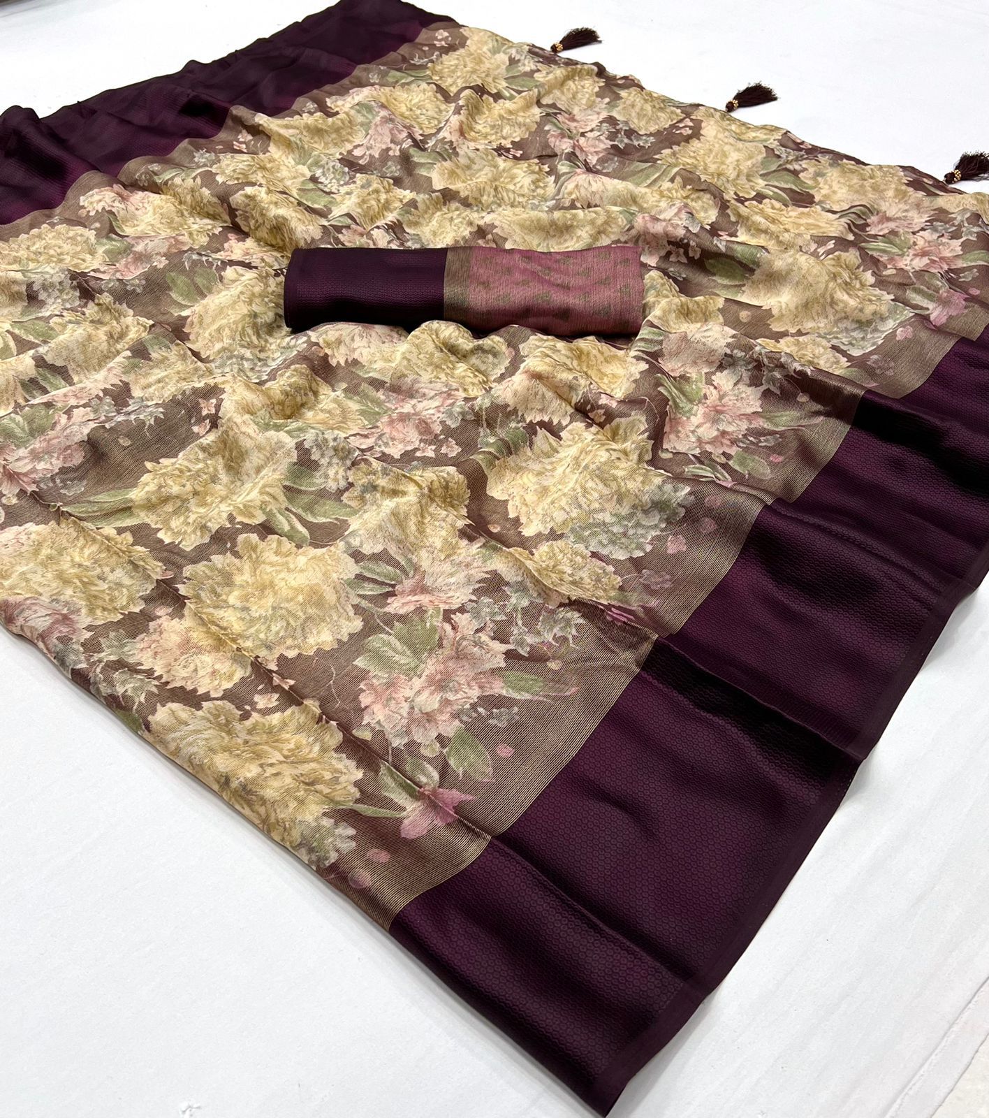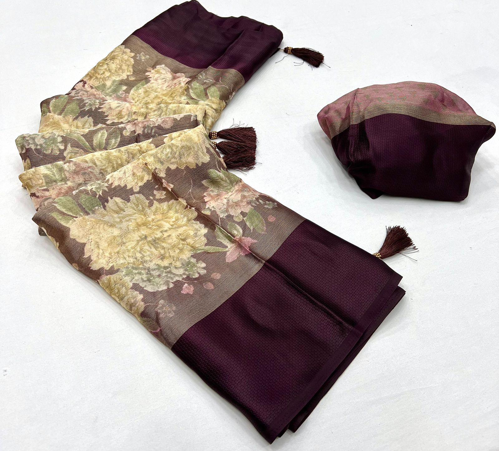 Buy Online Chiffon Brasso Silk Sarees 8 Pcs of Full Catalogue at Wholesale Price. Looking for Chiffon Brasso Silk Sarees Full Catalouge at Best Price? Buy Now Chiffon Brasso Silk Sarees at Wholesale Rate of Rs 7160 with Total 8 Pcs from authroized dealer and supplier of Brand. Cost of Each piece is just only Rs 895 which is very low and affordable price to resale the product in your retail store ,This is Surat based Wholesale Supplier & Dealer of Brand. Click on Brand name to Know more about Brand's products.Call or Whatsapp on 9898838984 for booking or enquiry
