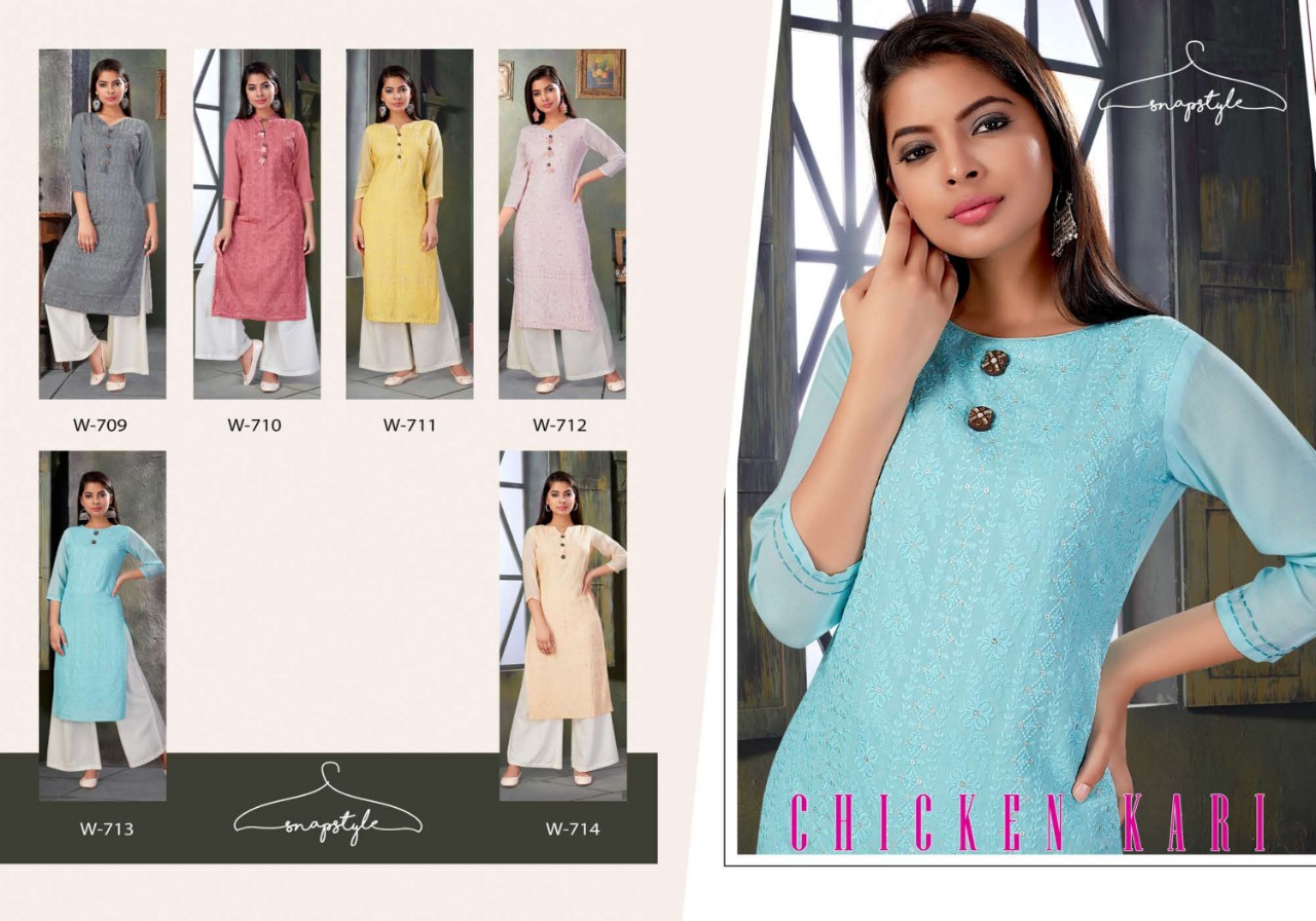 Buy Online Chikenkari By Snapstyle Kurtis With Bottom Wholesale Supplier And Dealer Surat 6 Pcs of Full Catalogue at Wholesale Price. Looking for Chikenkari By Snapstyle Kurtis With Bottom Wholesale Supplier And Dealer Surat Full Catalouge at Best Price? Buy Now Chikenkari By Snapstyle Kurtis With Bottom Wholesale Supplier And Dealer Surat at Wholesale Rate of Rs 4470 with Total 6 Pcs from authroized dealer and supplier of Brand. Cost of Each piece is just only Rs 745 which is very low and affordable price to resale the product in your retail store ,This is Surat based Wholesale Supplier & Dealer of Brand. Click on Brand name to Know more about Brand's products.Call or Whatsapp on 9898838984 for booking or enquiry