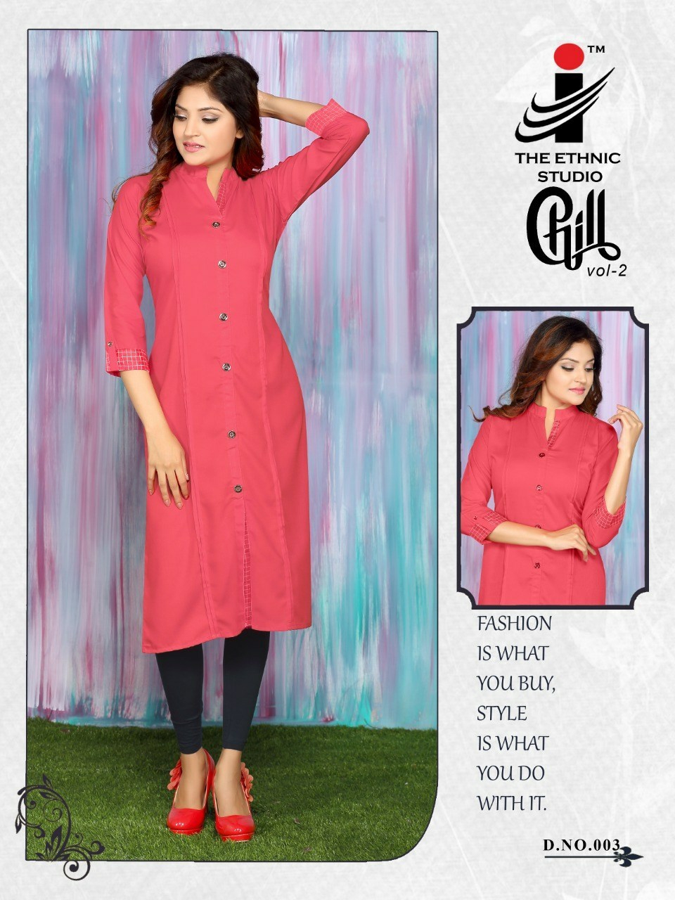 *Brand :* The ethnic studio *Catalog Name :* Chill Vol 2 *Price :* ?345 *Piece :* 6 *Total Price :* 2070 ( GST Extra ) *Size :* L,XL,XXL *Fabric :* Rayon *Availibility :* On Booking |