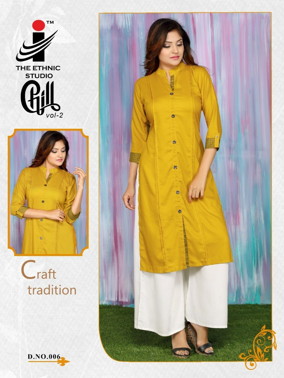Buy Online Chill Vol 2 By The Ethnic Studio Reyon Kurtis Collecotion Wholesale Supplier Gujarat 6 Pcs of Full Catalogue at Wholesale Price. Looking for Chill Vol 2 By The Ethnic Studio Reyon Kurtis Collecotion Wholesale Supplier Gujarat Full Catalouge at Best Price? Buy Now Chill Vol 2 By The Ethnic Studio Reyon Kurtis Collecotion Wholesale Supplier Gujarat at Wholesale Rate of Rs 2070 with Total 6 Pcs from authroized dealer and supplier of BRAND'S Brand. Cost of Each piece is just only Rs 345 which is very low and affordable price to resale the product in your retail store ,This is Surat based Wholesale Supplier & Dealer of BRAND'S Brand. Click on Brand name to Know more about BRAND'S Brand's products.Call or Whatsapp on 9898838984 for booking or enquiry
