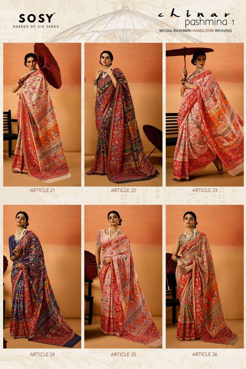 Chinar Pashmina1 Series Article 21 to Article 26 By Sosy Silk Saree collection manufacturer surat