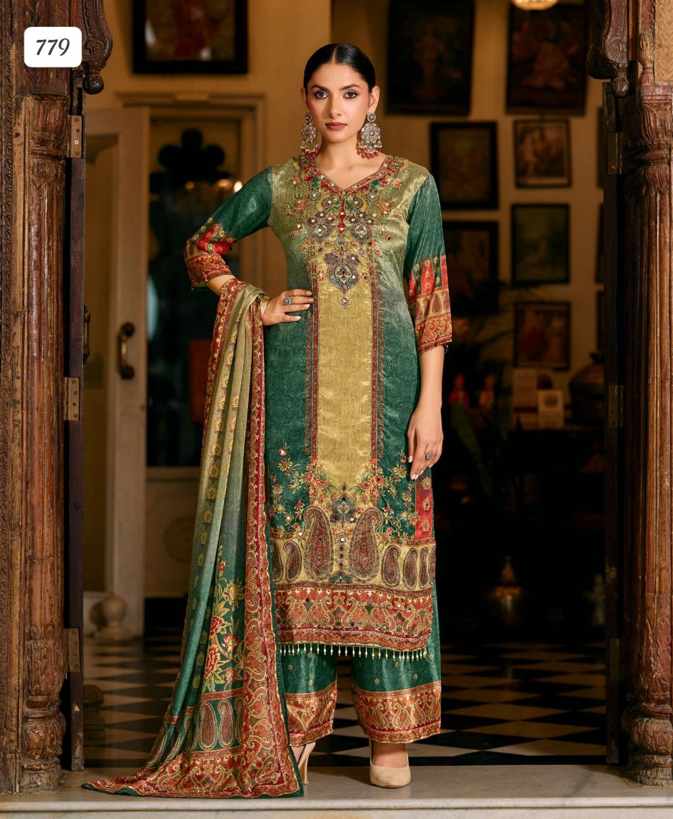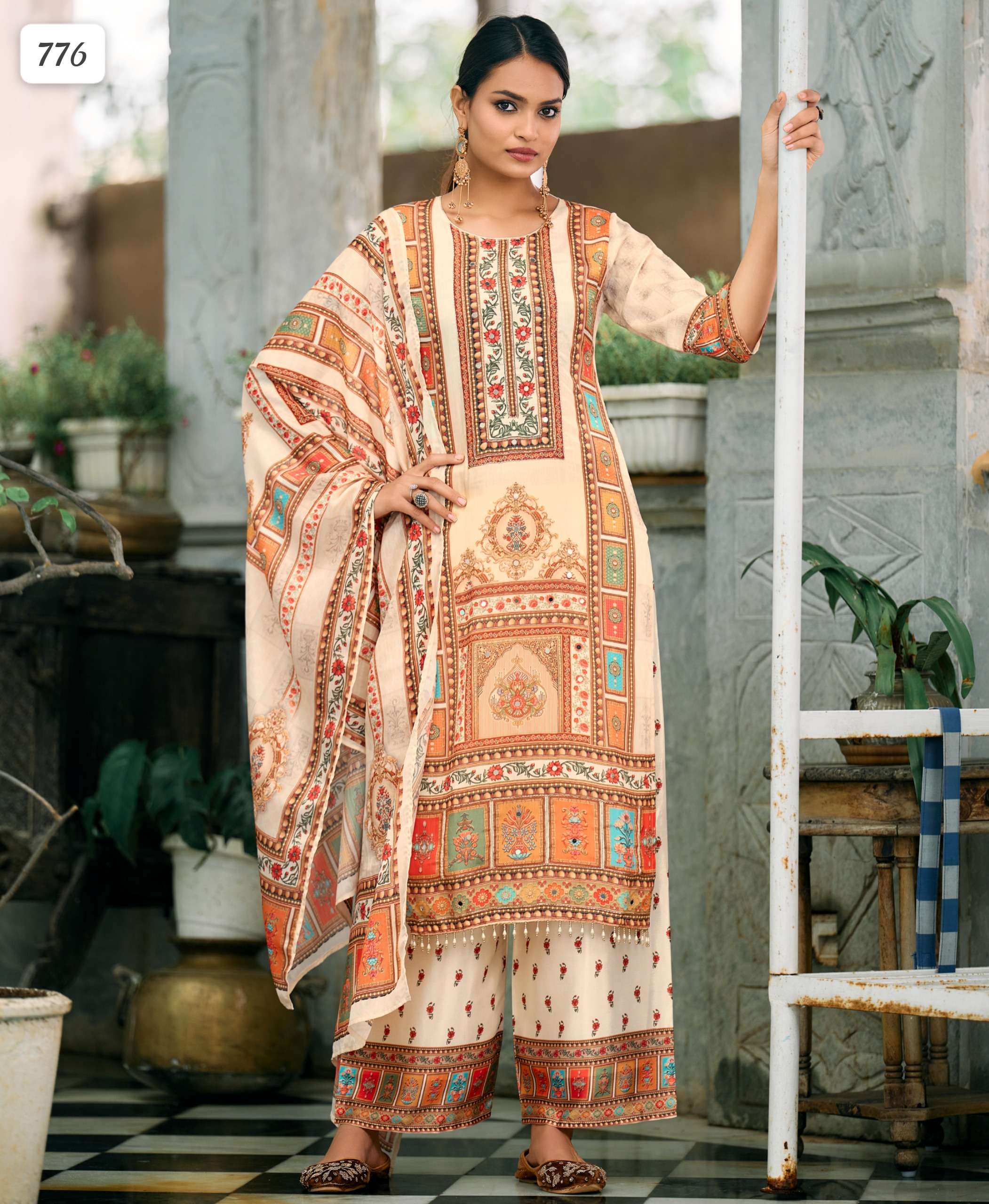 Chinon Chiffon Pakistani Printed With Handwork Pakistani Style Kurta With Palazzo & Printed Dupatta