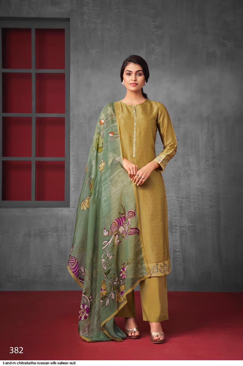 *T&M* Presents - *CHITRA KATHA* *TOP:-* RUSSIAN SILK DIGITAL PRINT WITH MUSLIN SILK NECK SLEEVE DIGITAL PRINT *BOTTOM:- * MUSLIN SILK HEAVY *BOTTOM:-* PURE ORGANZA SILK DIGITAL PRINT WITH FANCY HAND WORK *RATE:-* 2495? Set to set *DESIGNS:-* 06 |