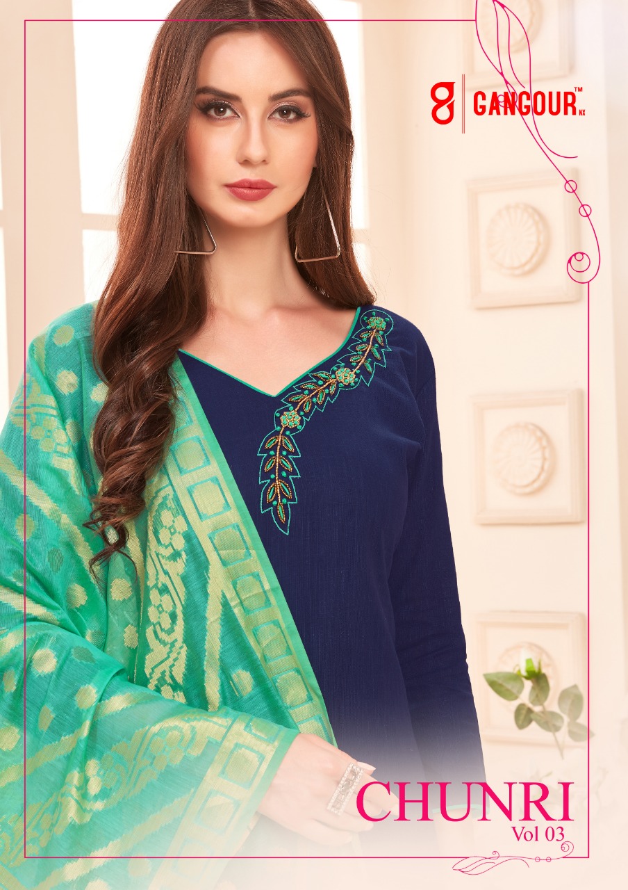 Chunri Vol 3 By Gangour Nx Salab Cotton Dress Materials Wholesale Supplier And Dealer Surat