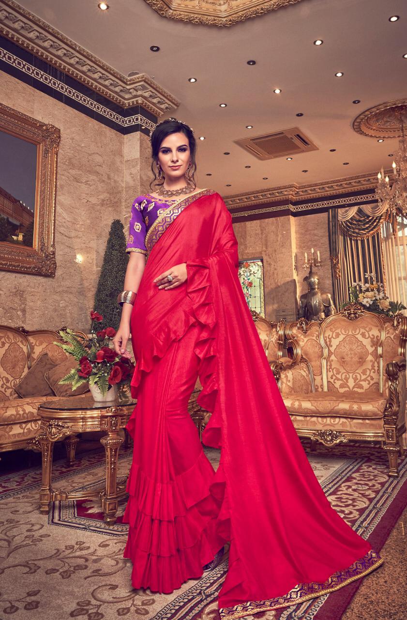 Cindrella by Sangrila Shangrila Presnets Designer Frill Pattern With Soft Dolla Silk Fabric And Fancy Blouse...!! 8 pc 8 design 995/- Set To Set. GST 5 Percent Extra. Delivery from today |