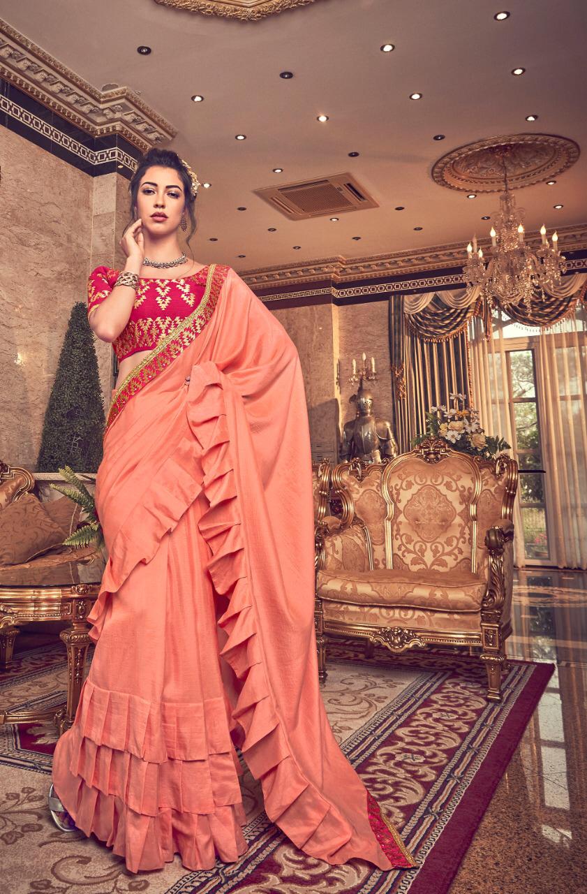Cindrella By Shangrila 20071 Series Designer Dola Silk Party Wear Frill Saree Collection Wholesaler Surat